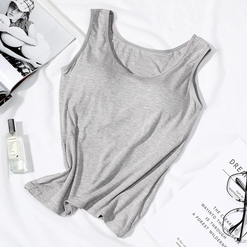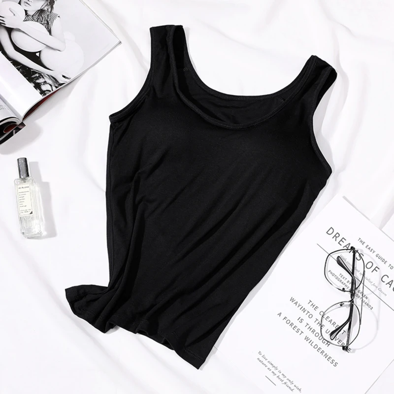 2023 Women's Vest Tops with Built In Bra Neck Vest Solid Color Padded Slim Fit Tank Tops Sexy Shirts Feminino Casual Tank Tops