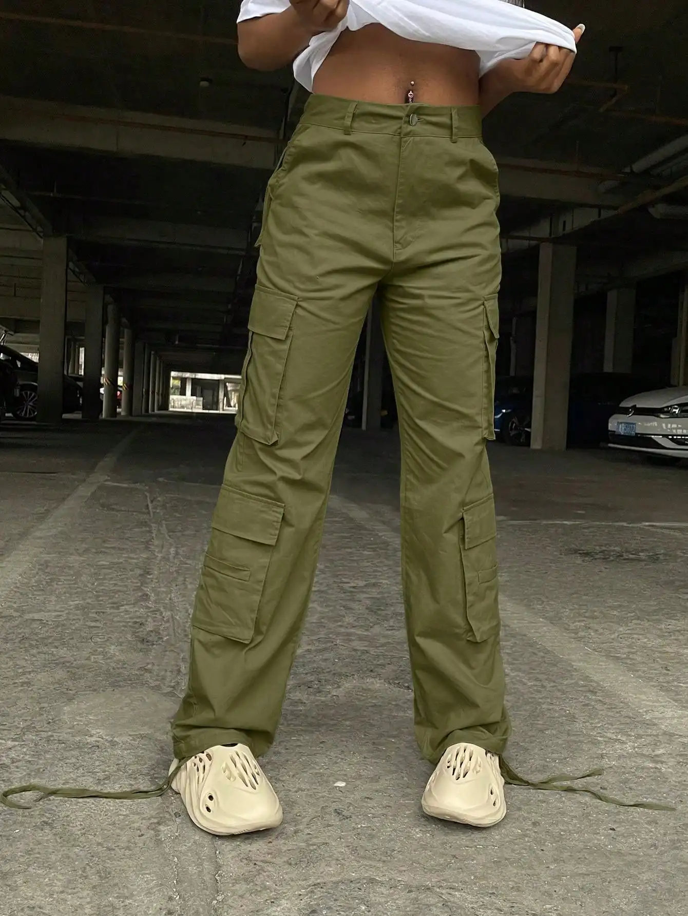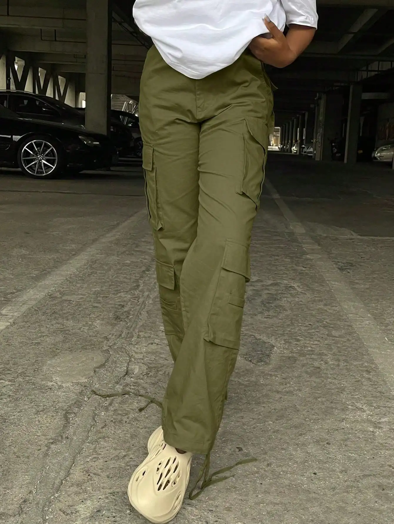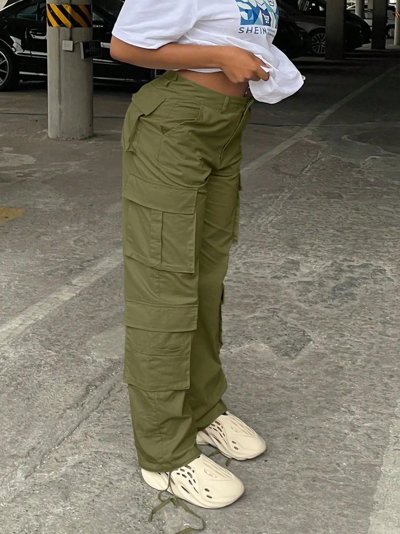 2025 New Christmas High Waist Solid Cargo Pants - Women's Loose Y2K Wide Leg Casual Pants with Pockets (Streetwear Sweatpants)