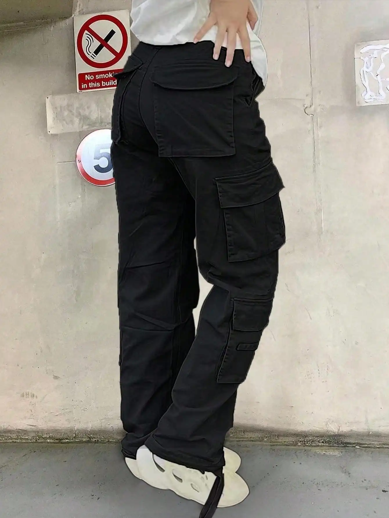 2025 New Christmas High Waist Solid Cargo Pants - Women's Loose Y2K Wide Leg Casual Pants with Pockets (Streetwear Sweatpants)