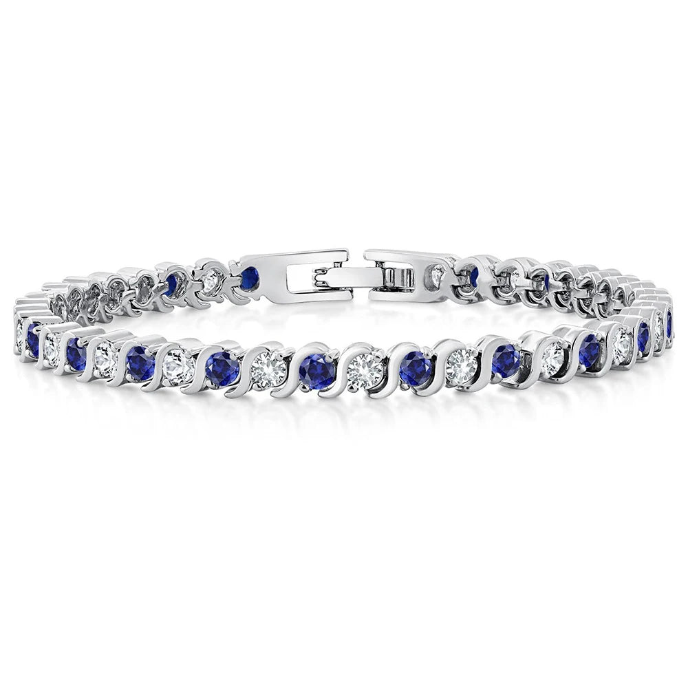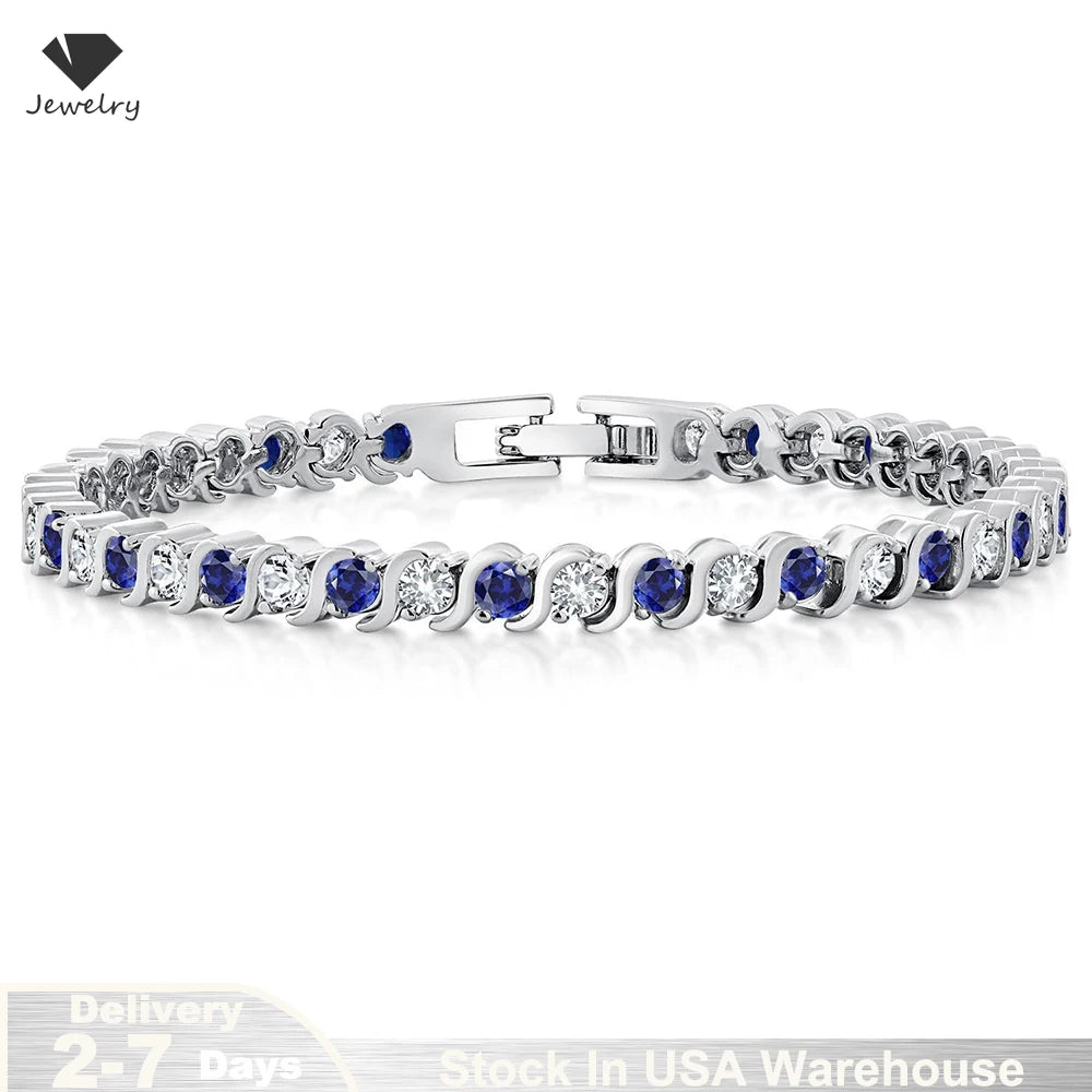 925 Sterling Silver Tennis Bracelet Sapphire Gemstone Blue Stone Bangle for Women Engagement Wedding Fine Jewelry Gift USA Stock
