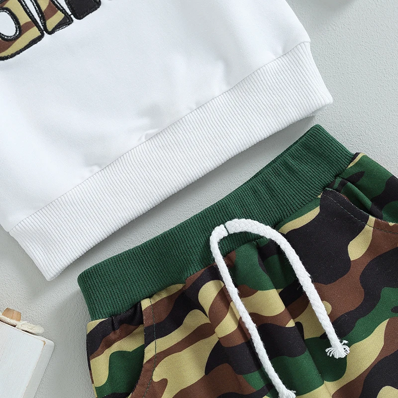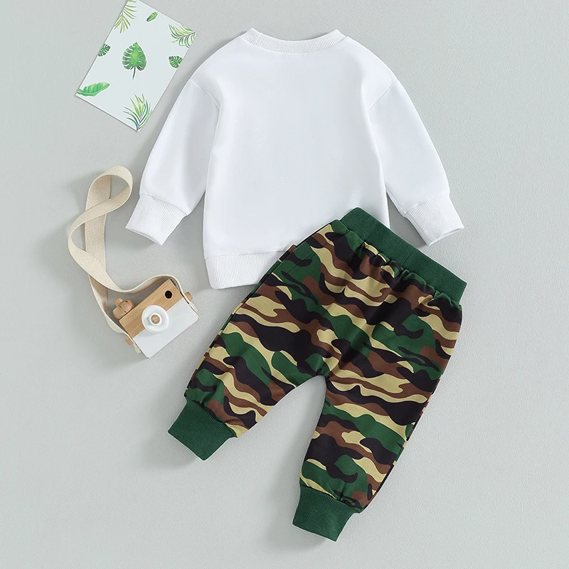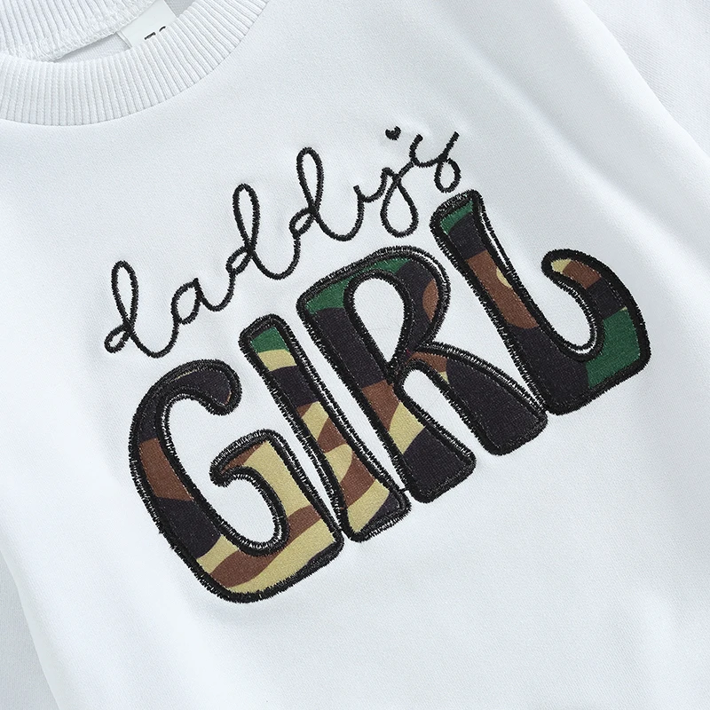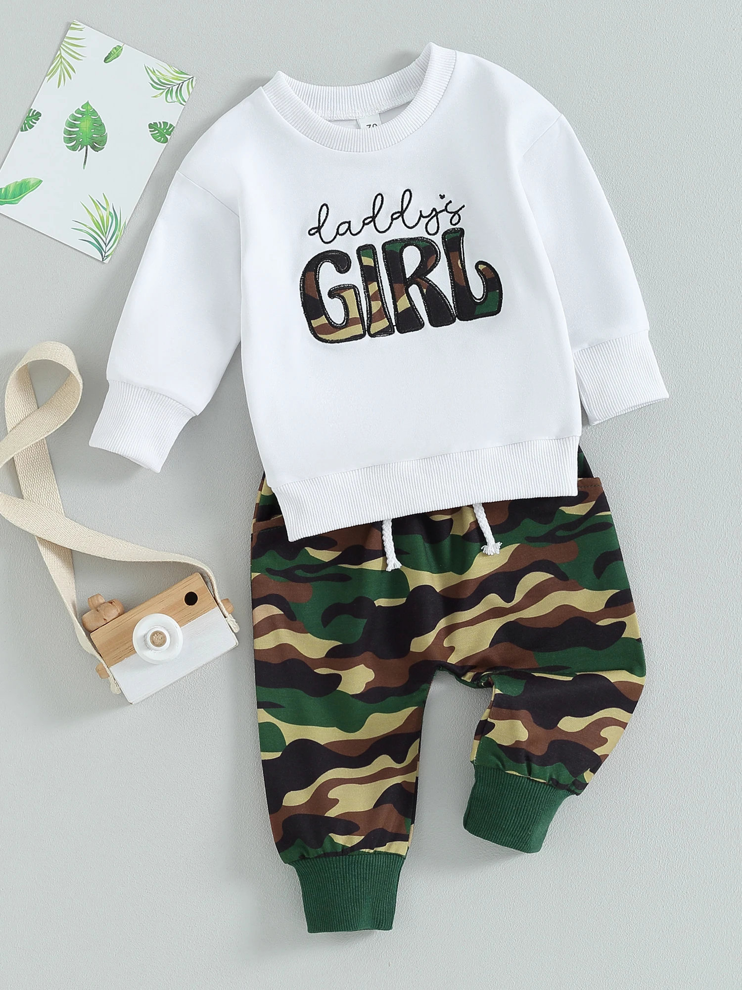 Baby Girl 2Pcs Spring Outfits Long Sleeve Embroidery Pullover + Camouflage Pants Set Toddler Clothes