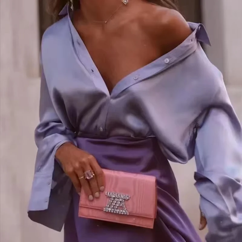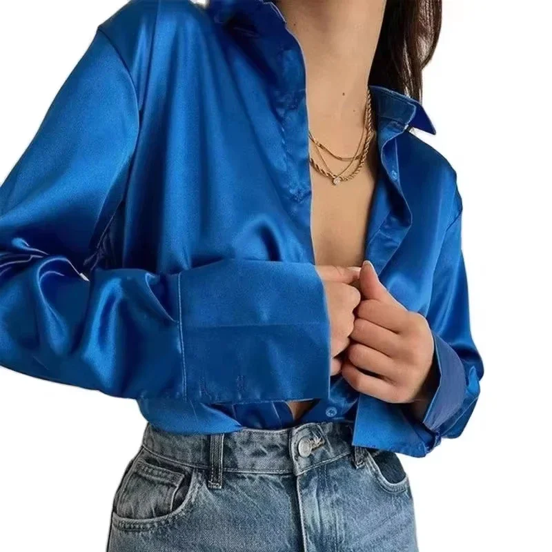 Autumn Elegant Solid Satin Shirt Office Lady Blouse Vintage Long Sleeve Shirt Loose Button Up Shirts Fashion Women Tops 18913