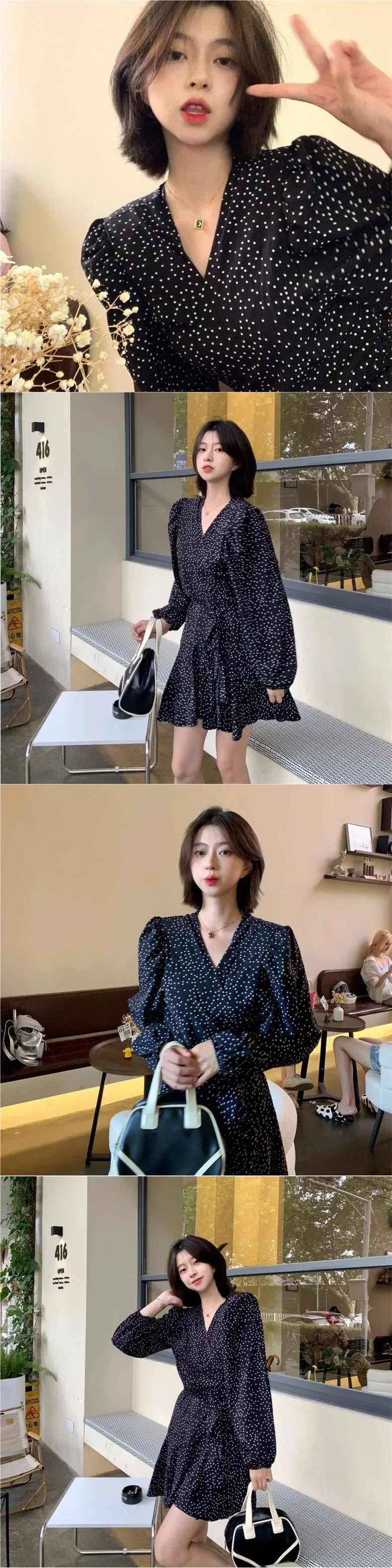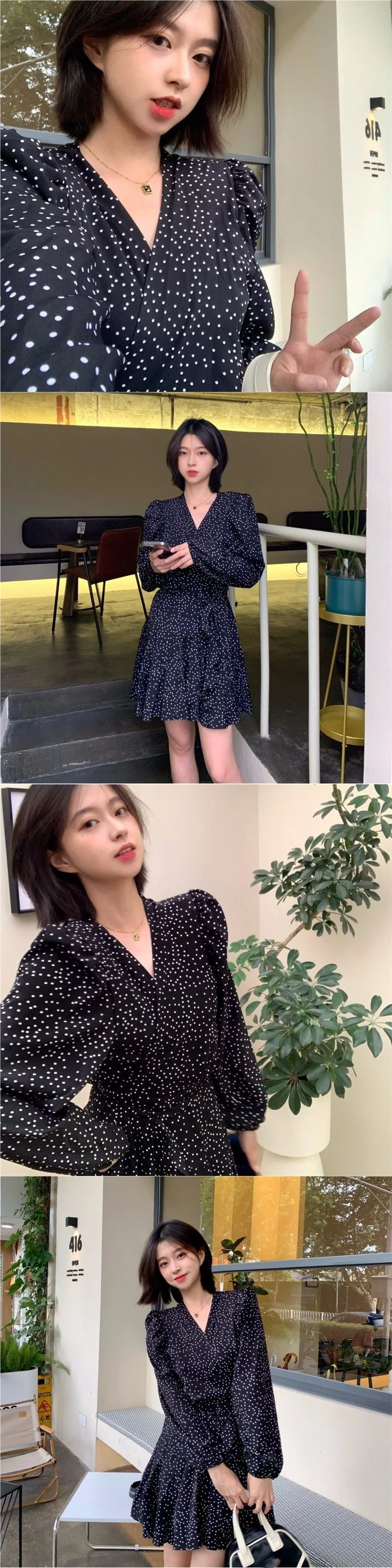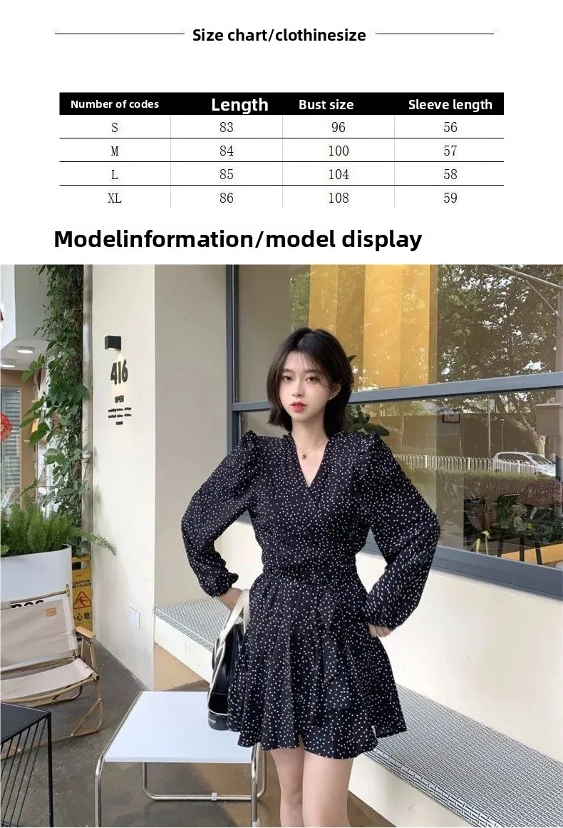 • French Hepburn Style : Embrace elegance with this Black Polka Dot Floral Long-sleeved dress, inspired by the French Hepburn style, perfect for tea breaks or casual outings.