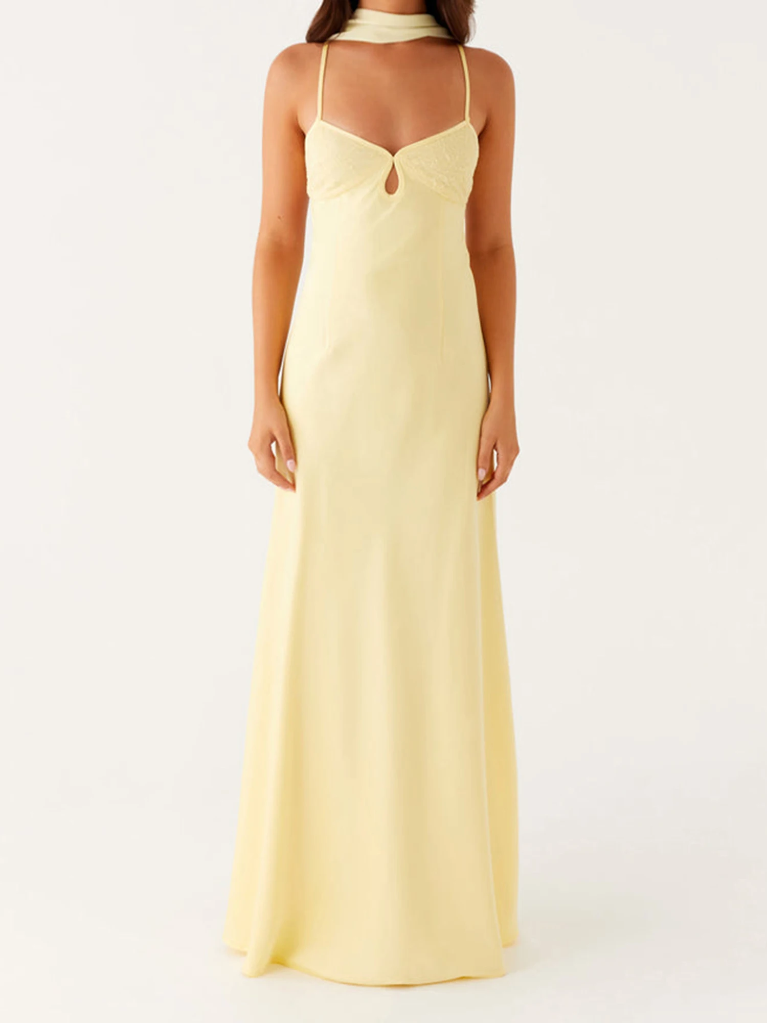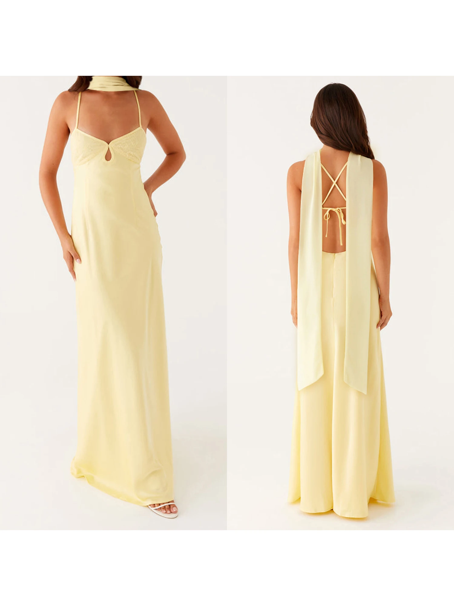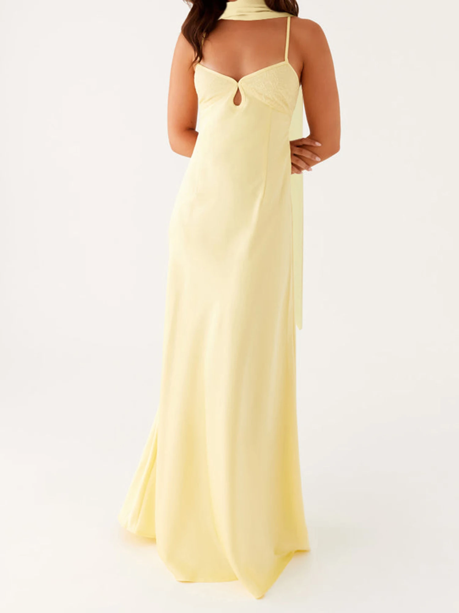 Elegant Maxi Dress with Adjustable Spaghetti Straps and Flowy Silhouette for Women s Summer Fashion Style