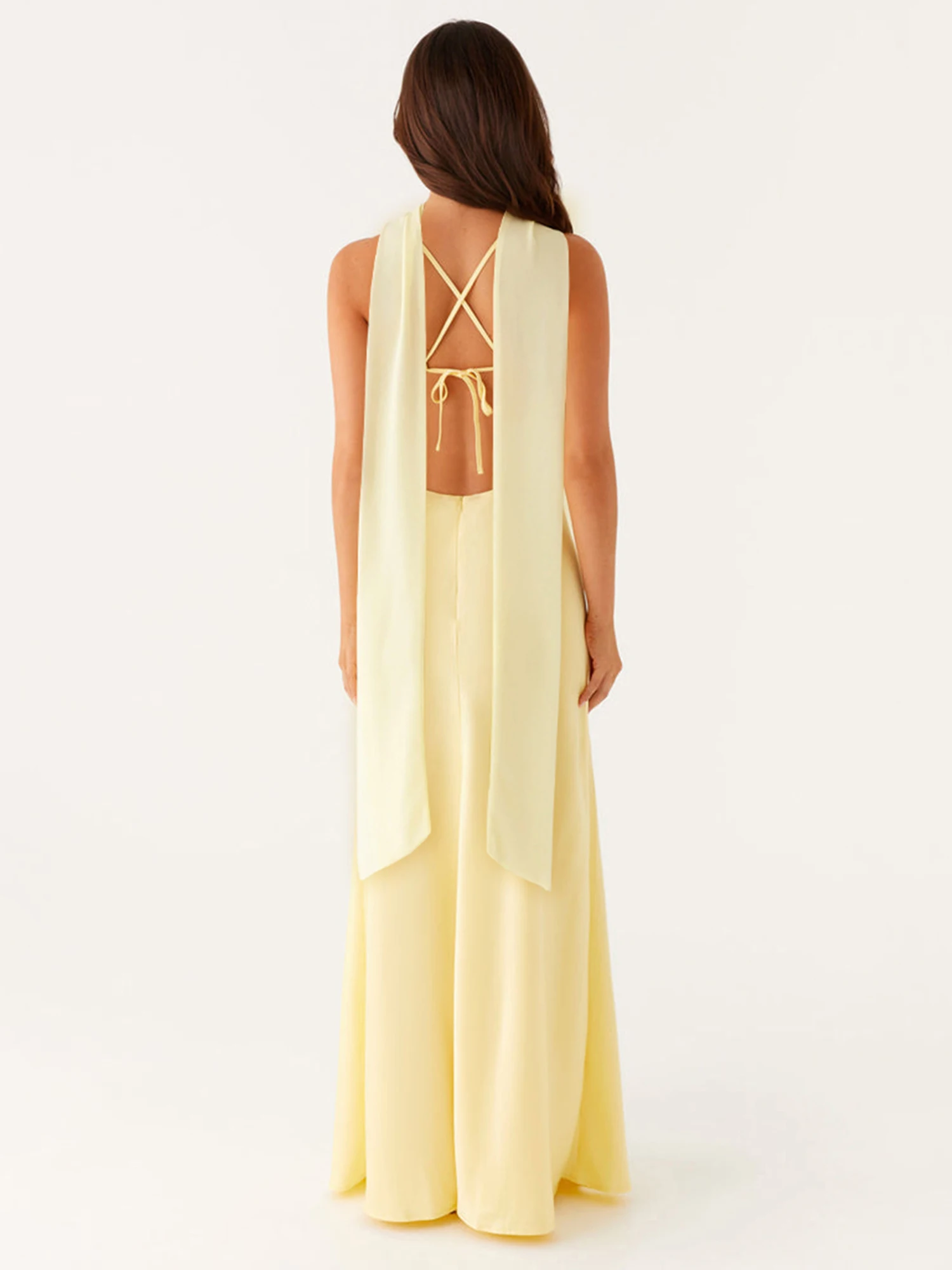 Women Long Dress Solid Color Cami Dress Summer Fashion Sleeveless Spaghetti Strap Dress