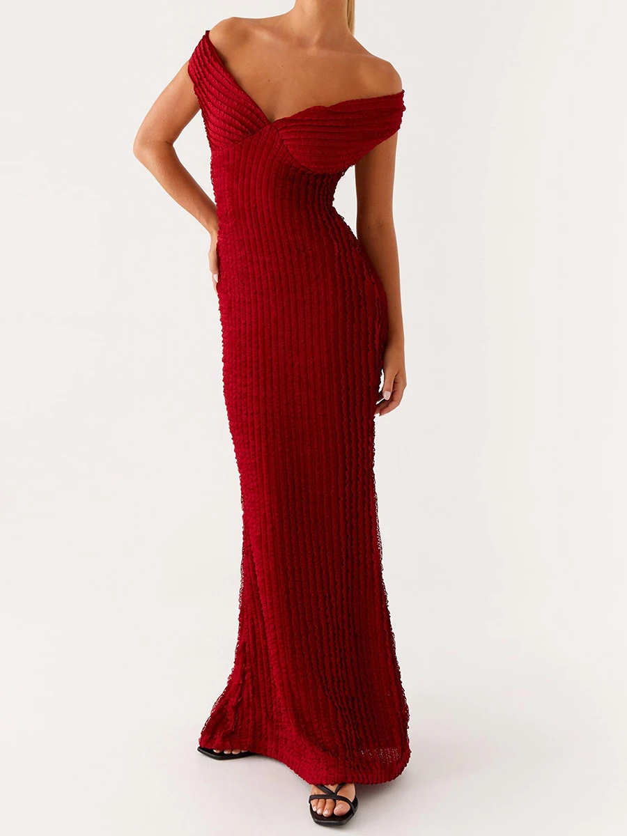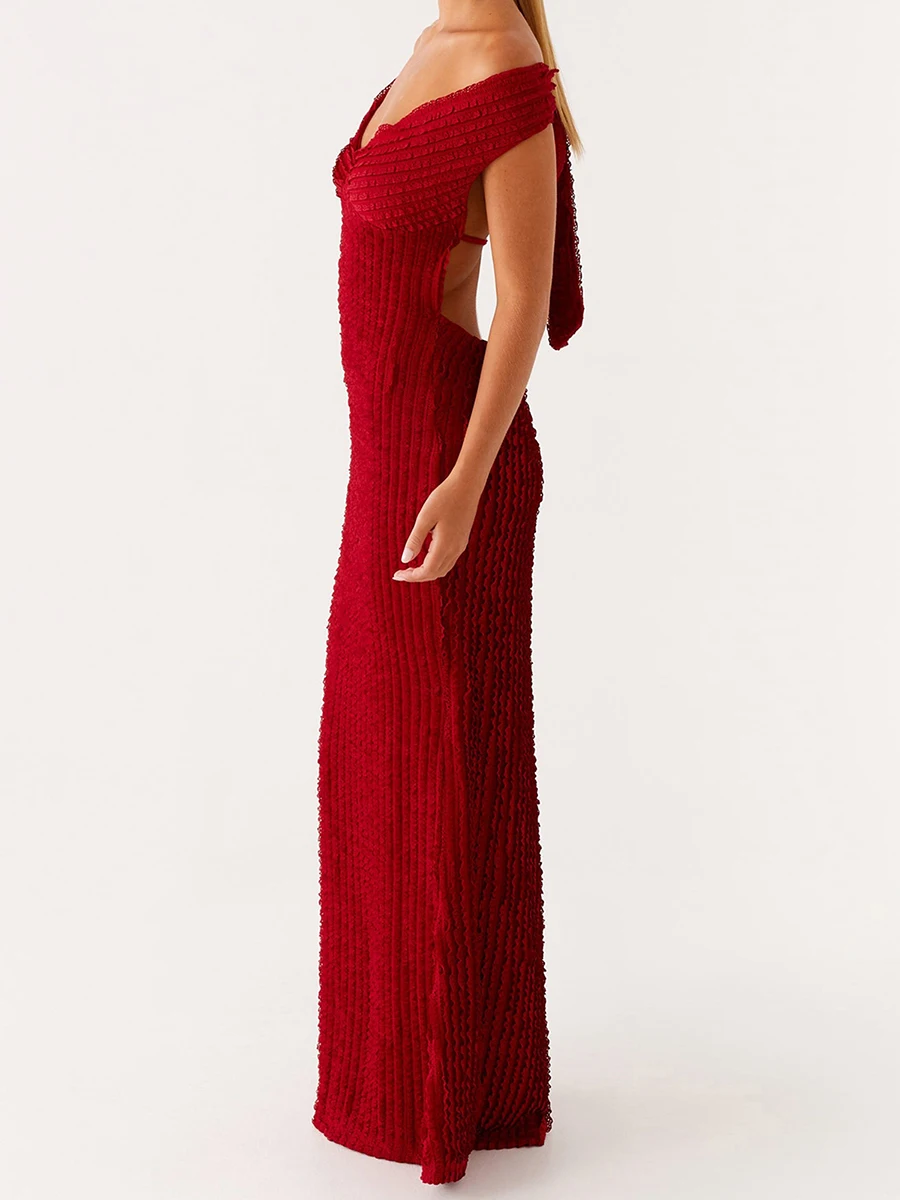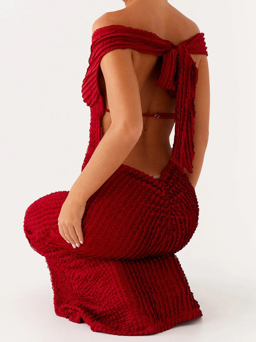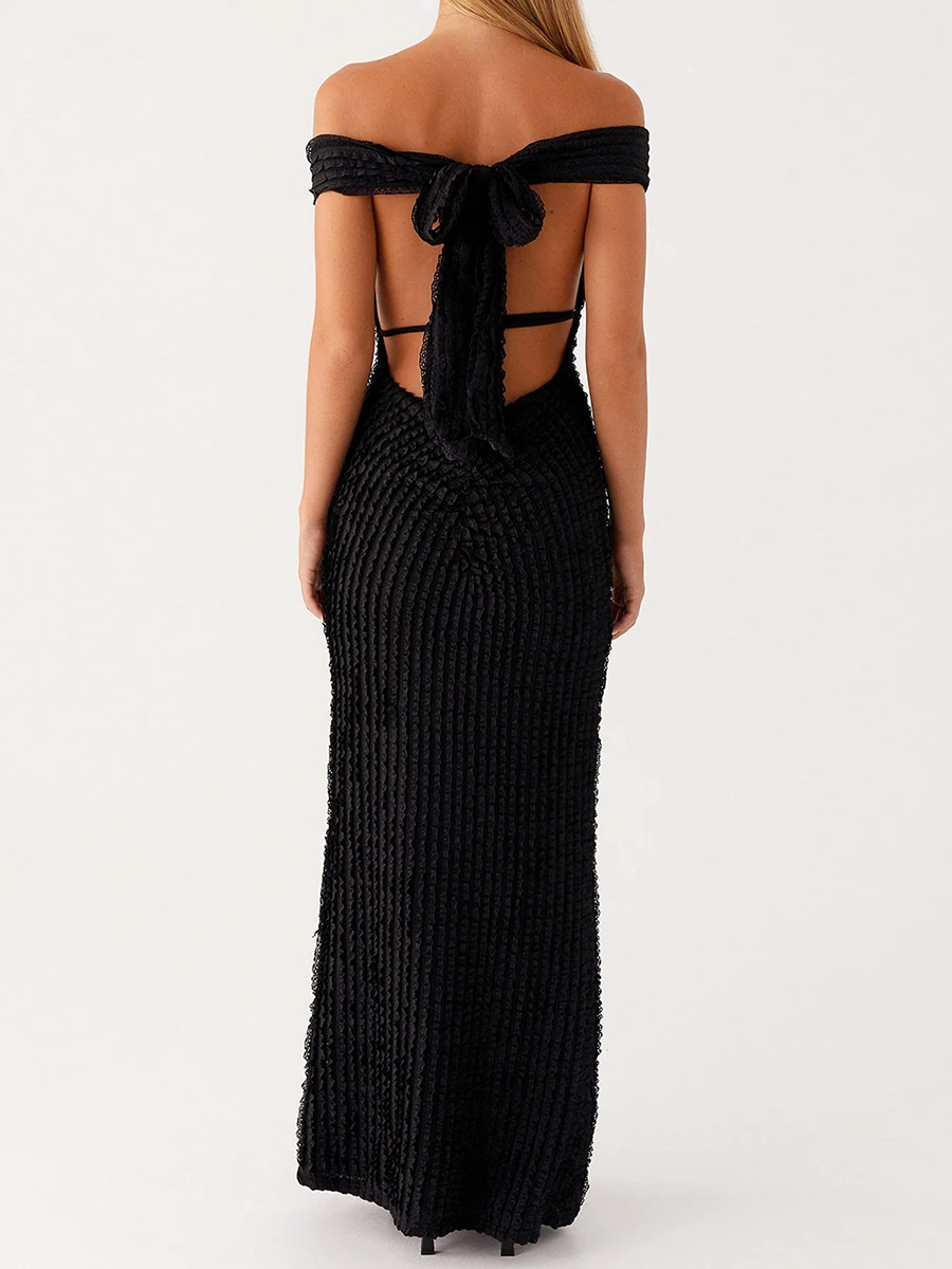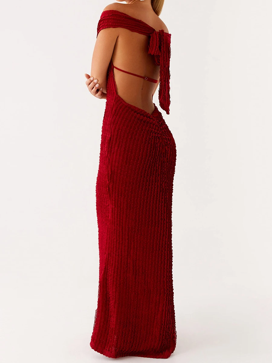Women's Bodycon Long Dress Fashion Off Shoulder Tie Back Solid Color Fit Cocktail Dress