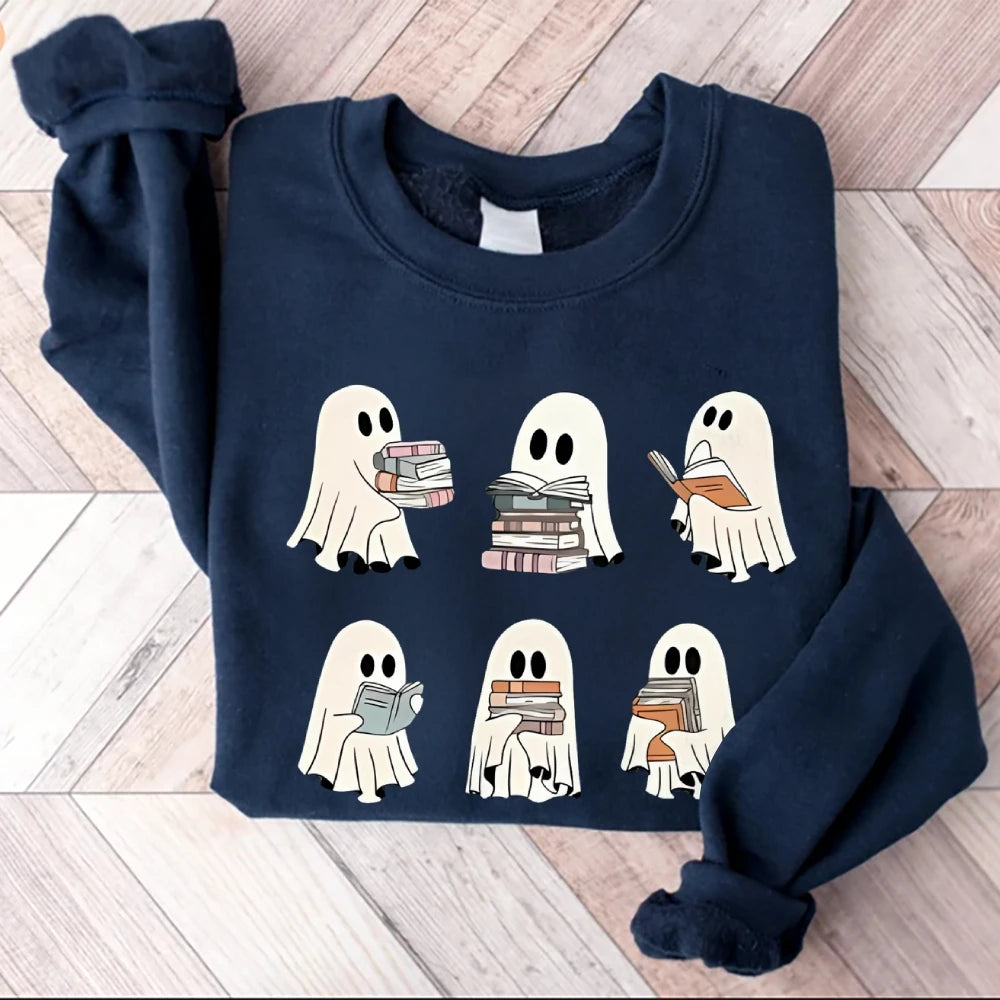 Ghost Reading Books Sweatshirts Halloween Teacher Gift Librarian Halloween Hoodie Ghost Crewneck Tops Crewneck Fashion Clothing