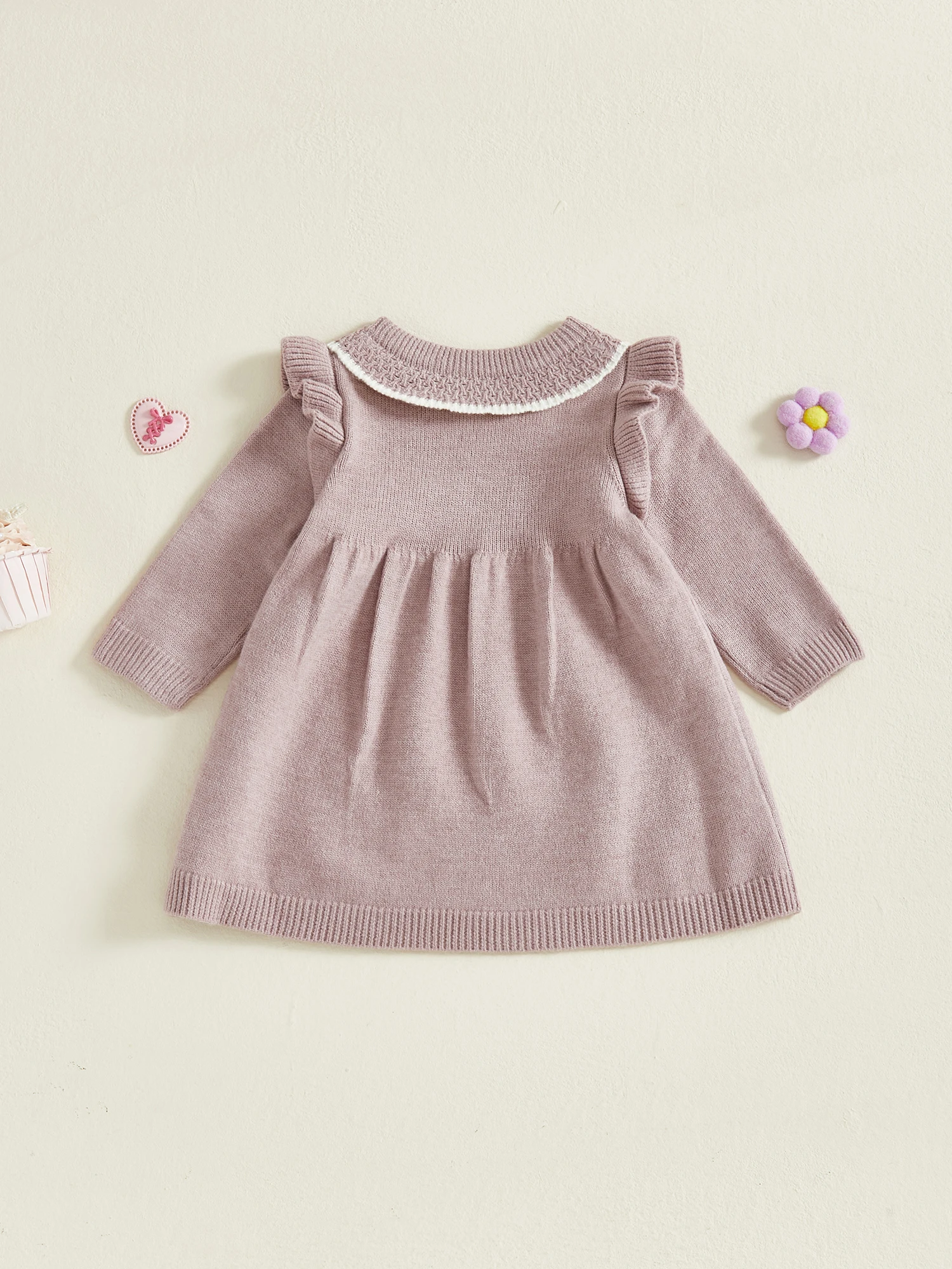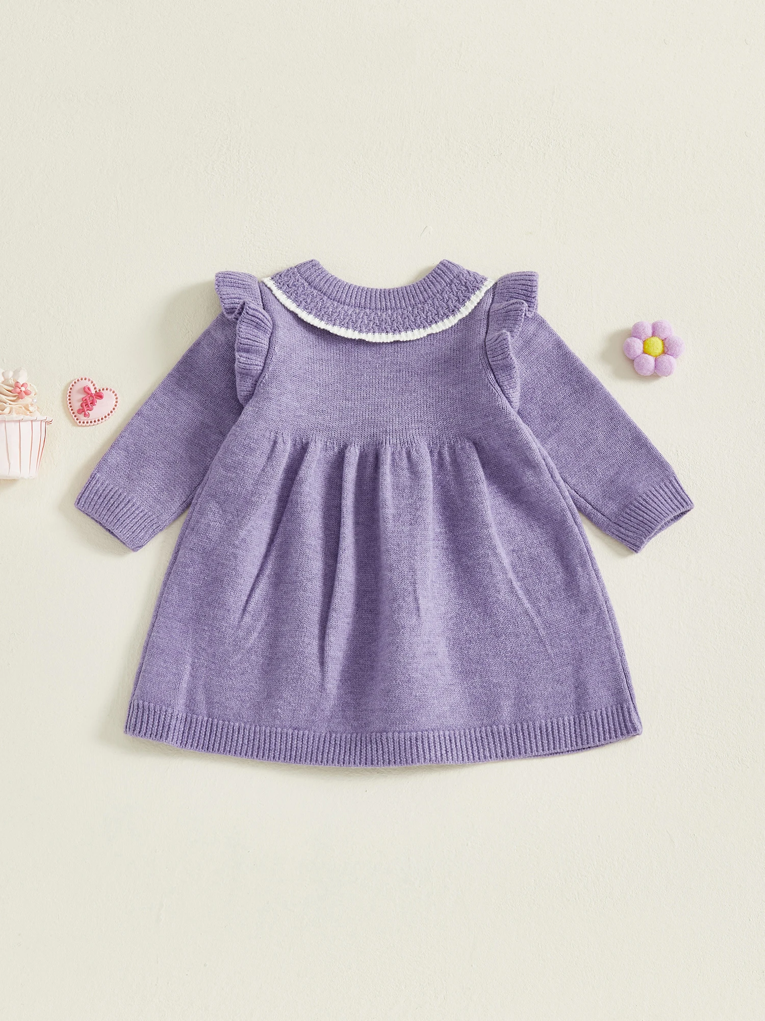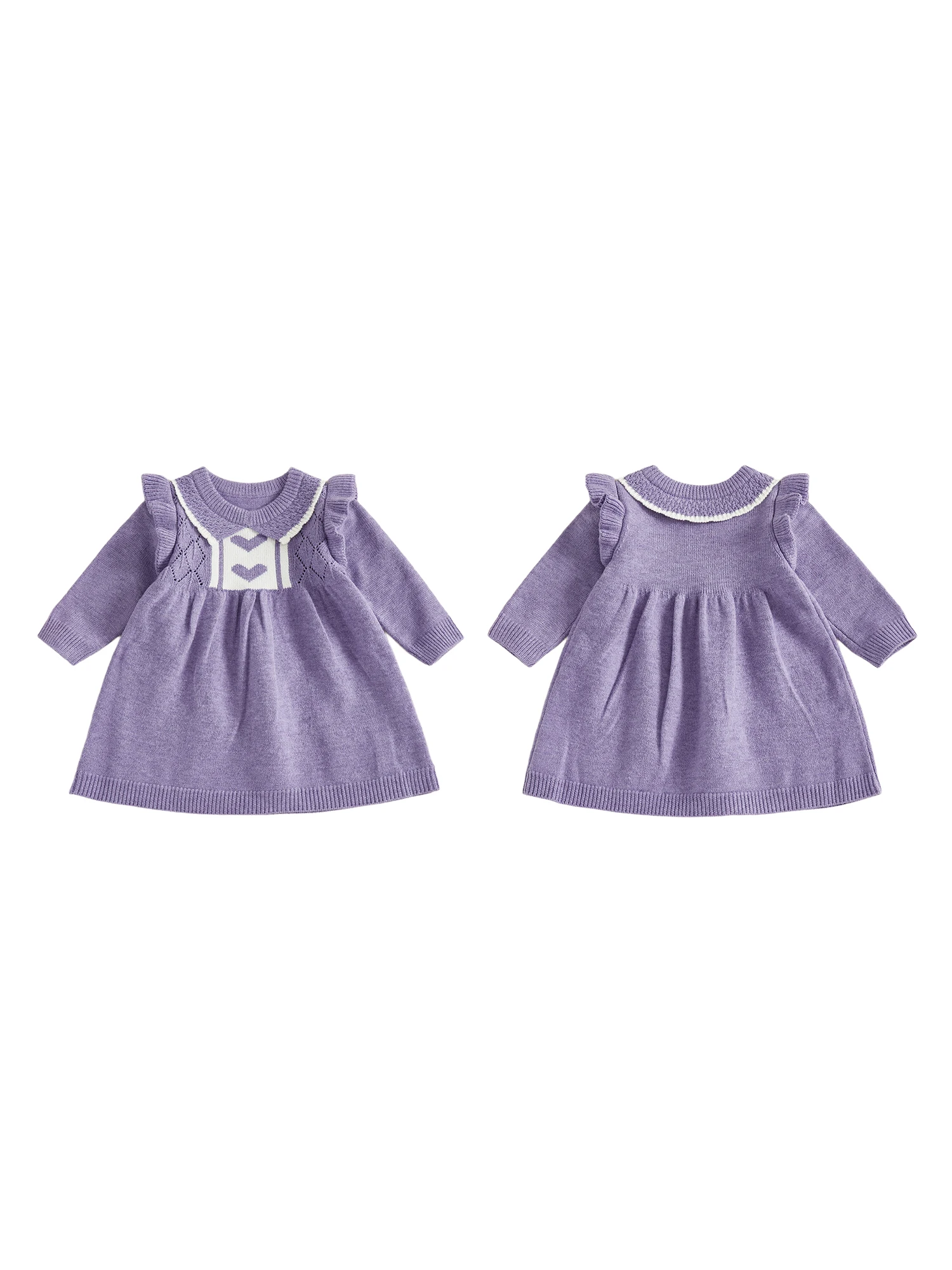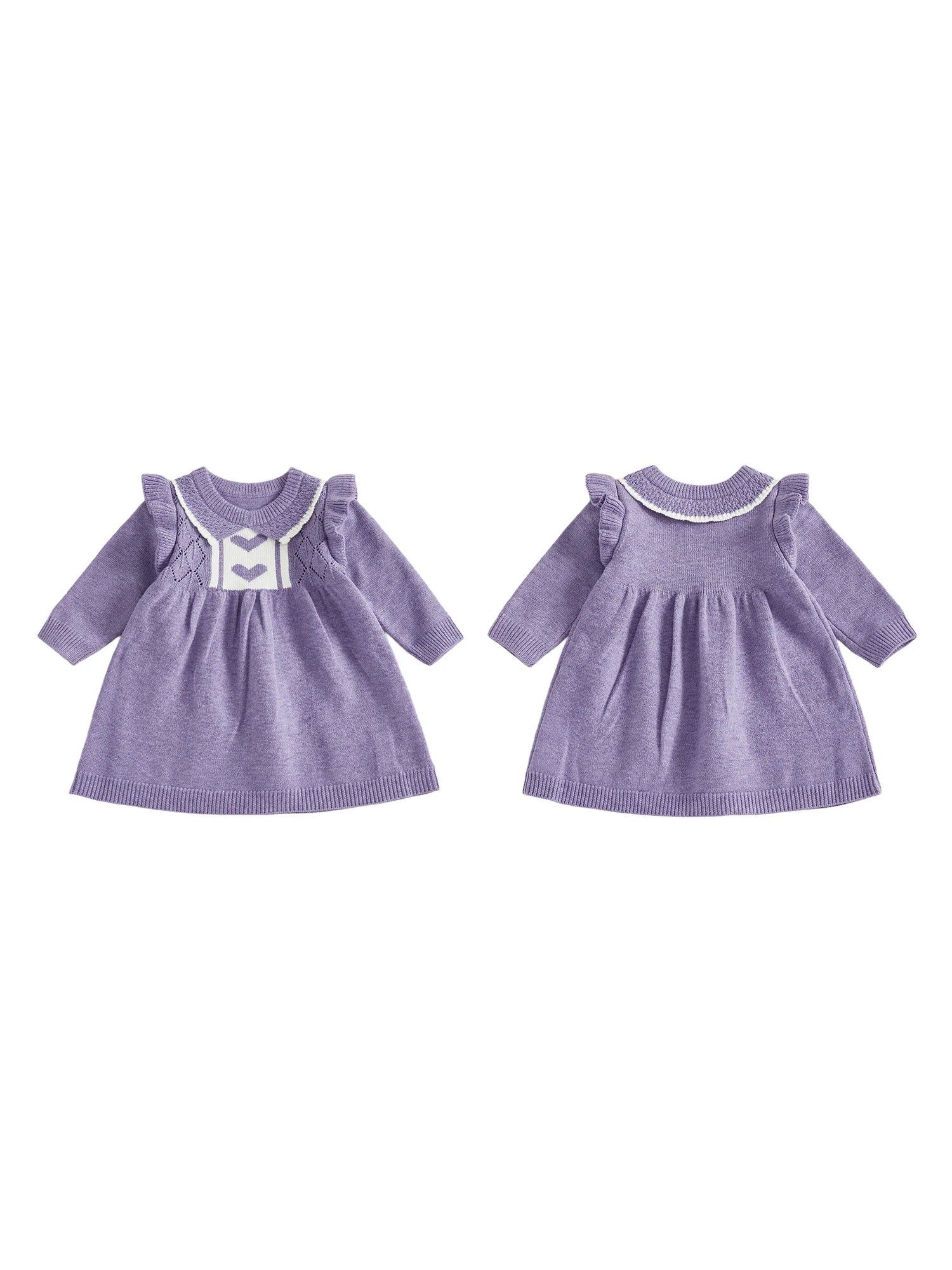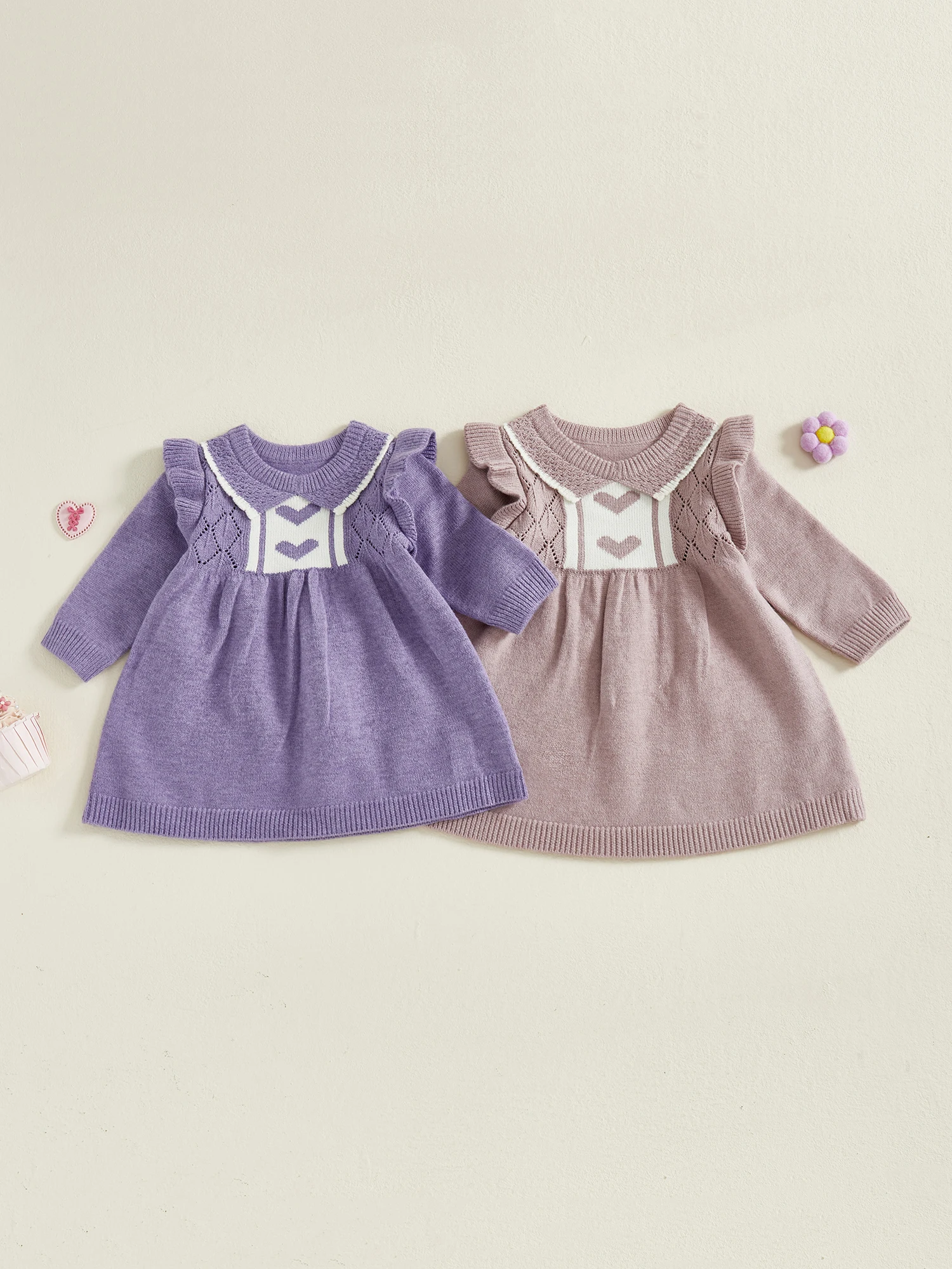Little Girls Knit Sweater Dress Long Sleeve Round Neck Heart Print A-line Dress