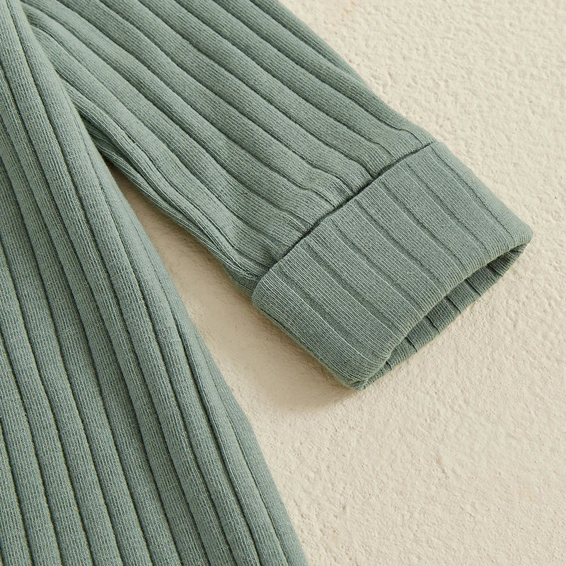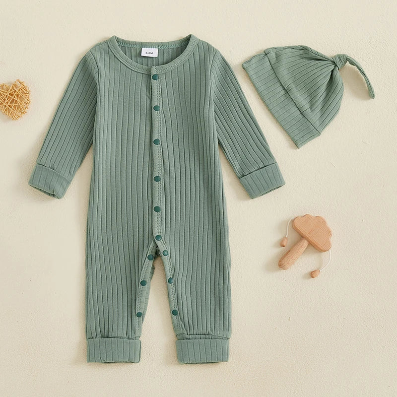 Baby 2Pcs Fall Outfits Long Sleeve Solid Color Ribbed Jumpsuit with Hat Set Newborn Clothes