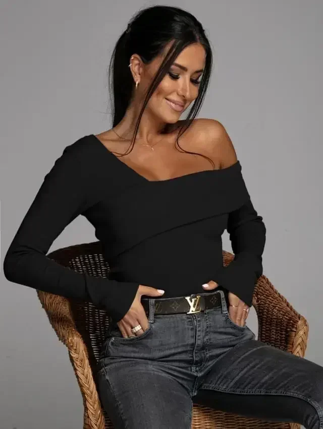 New Fashion Sexy Off the Shoulder Long sleeved T Elegant Women's Wear Essential Showcasing Female Charm