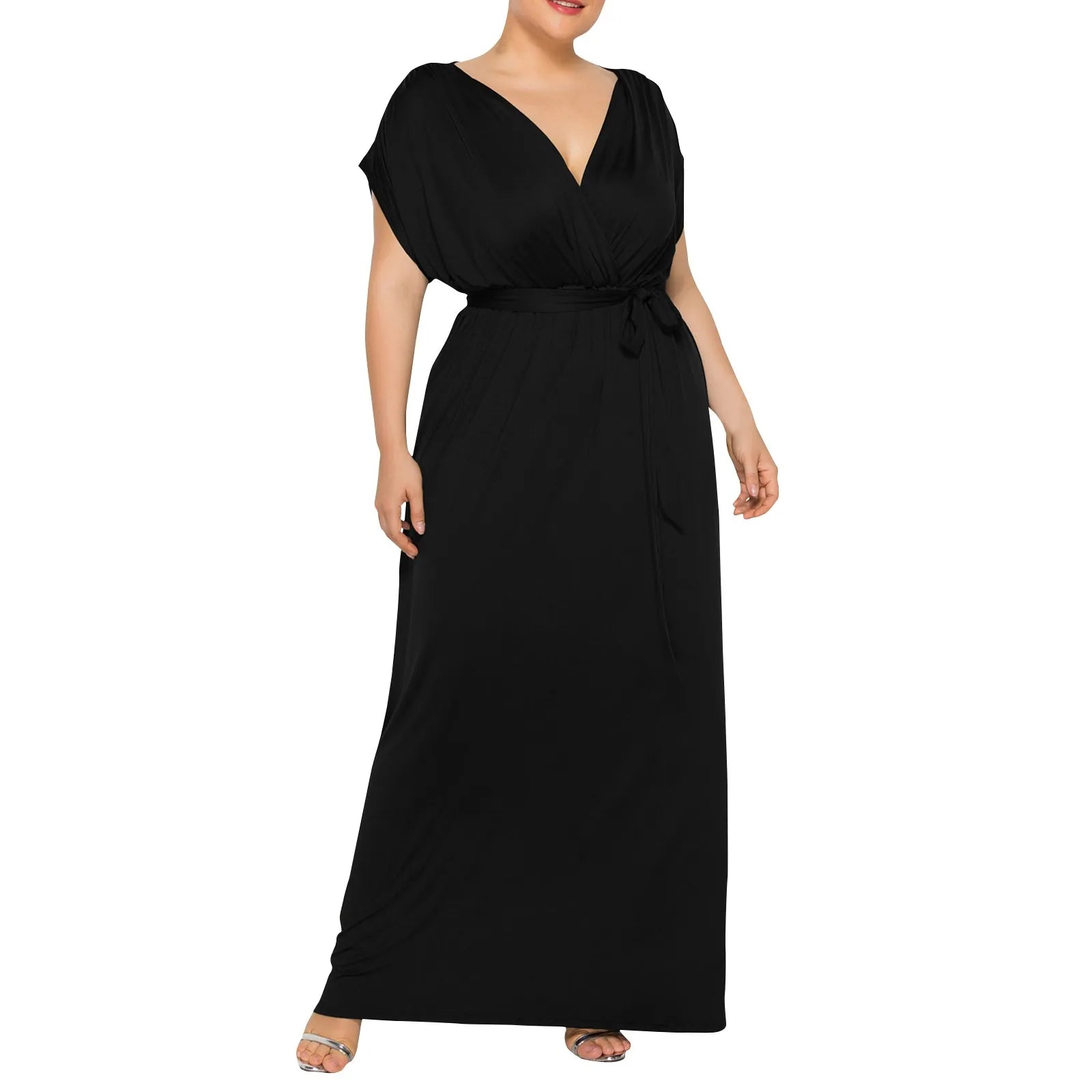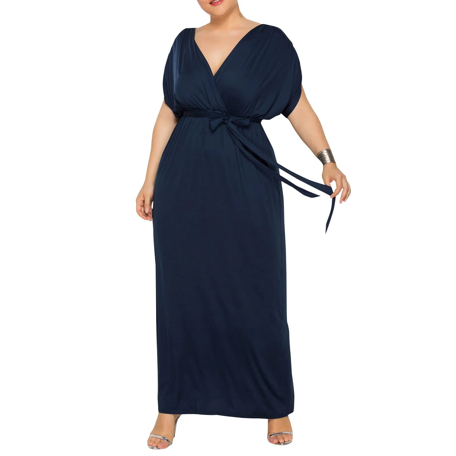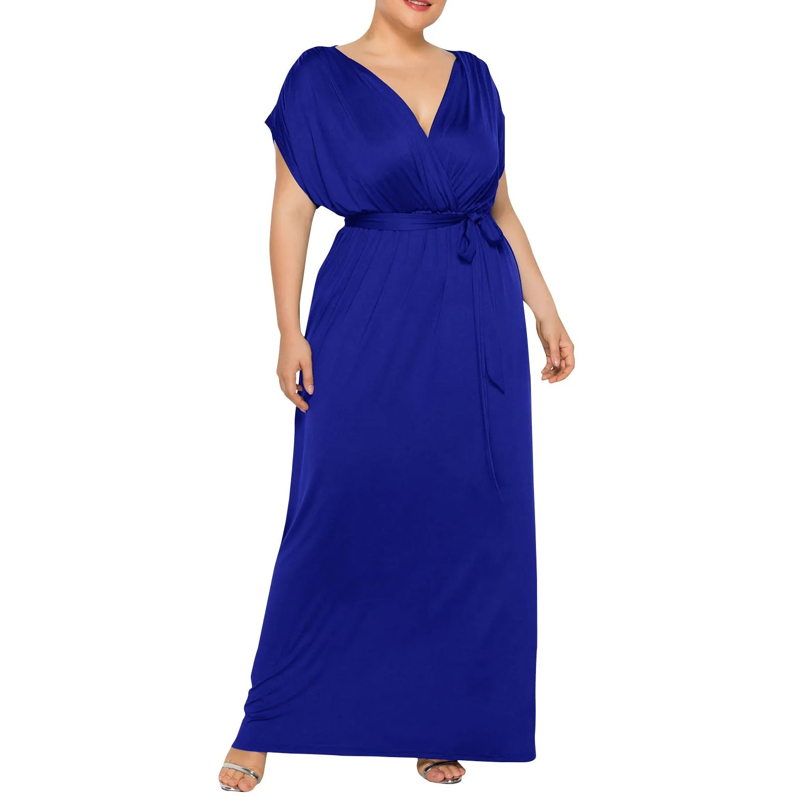 Plus Size Dress For Women Clothing 2024 Summer Large Size Short Sleeve Sexy Dress V Neck Casual Loose Oversized Female Clothing