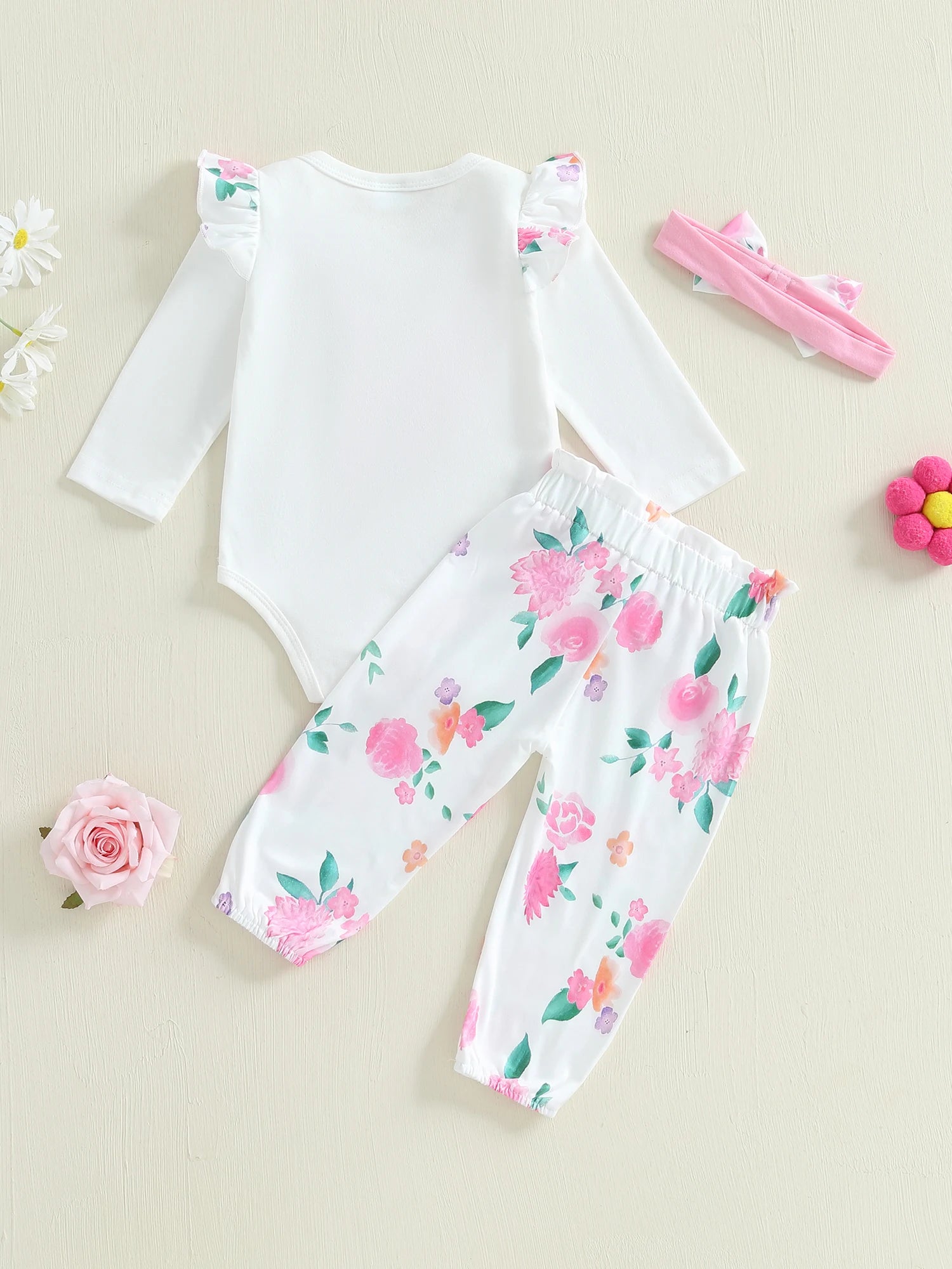 This pants set is a very good present for your baby girl on her birthday. She will love this 3-piece pants set. Easy outfit!