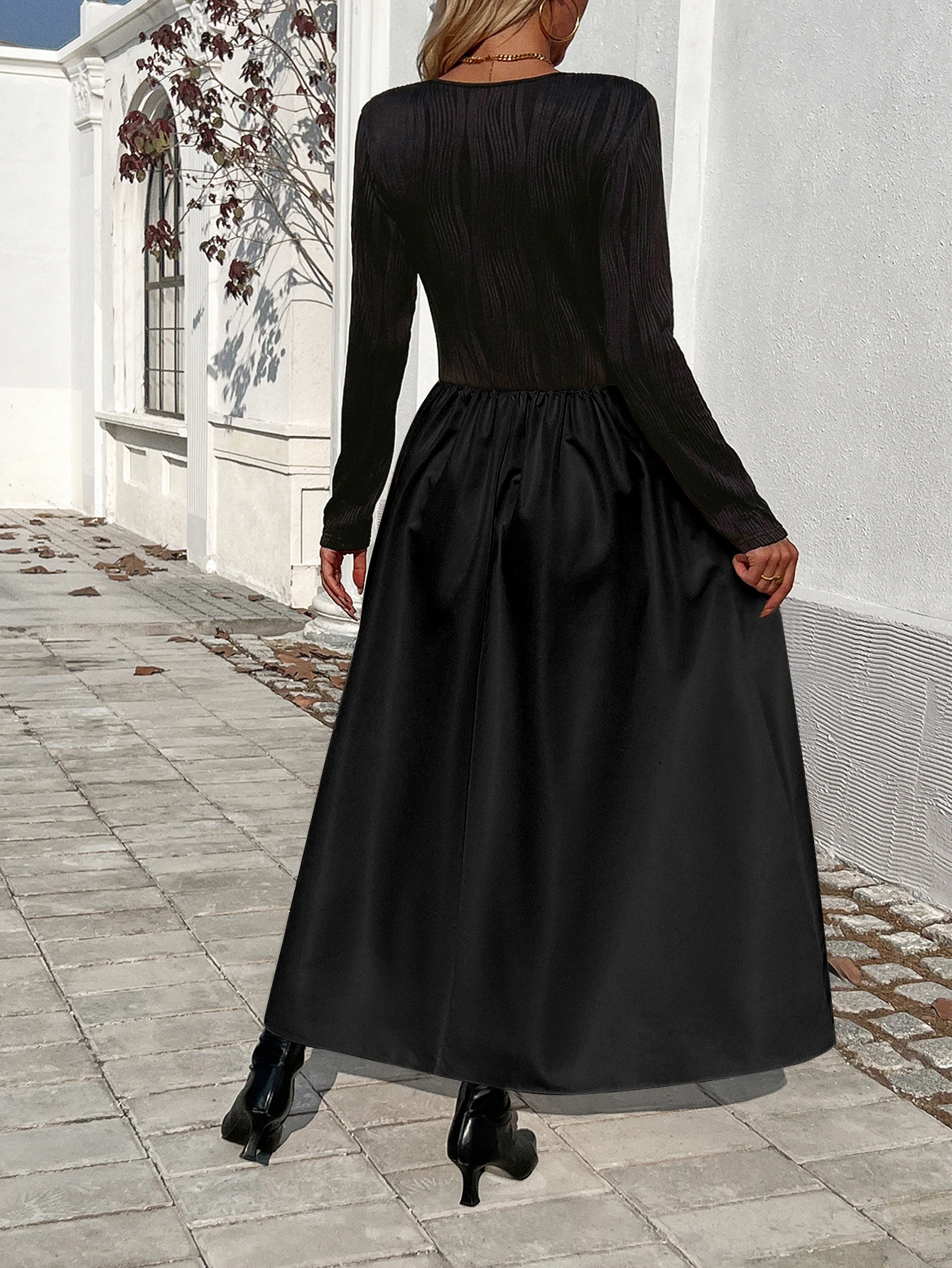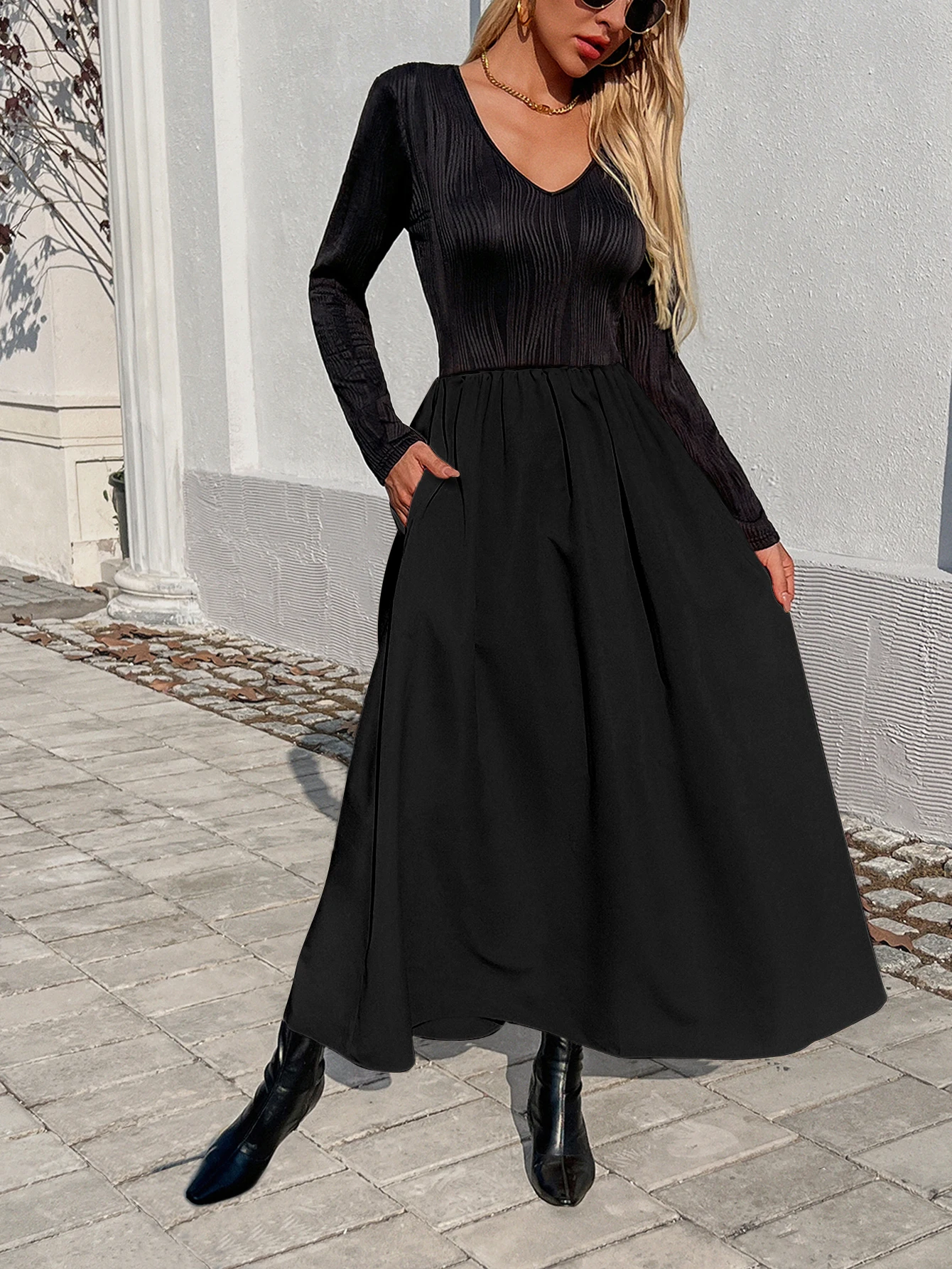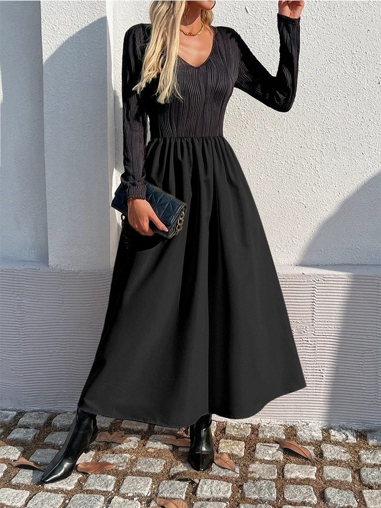 Women Long Sleeve Dress V Neck Elegant Maxi Dresses Solid Color Soft Dress Casual A Line Loose Dress