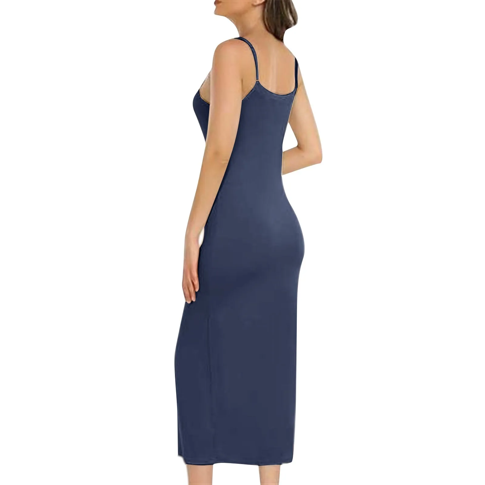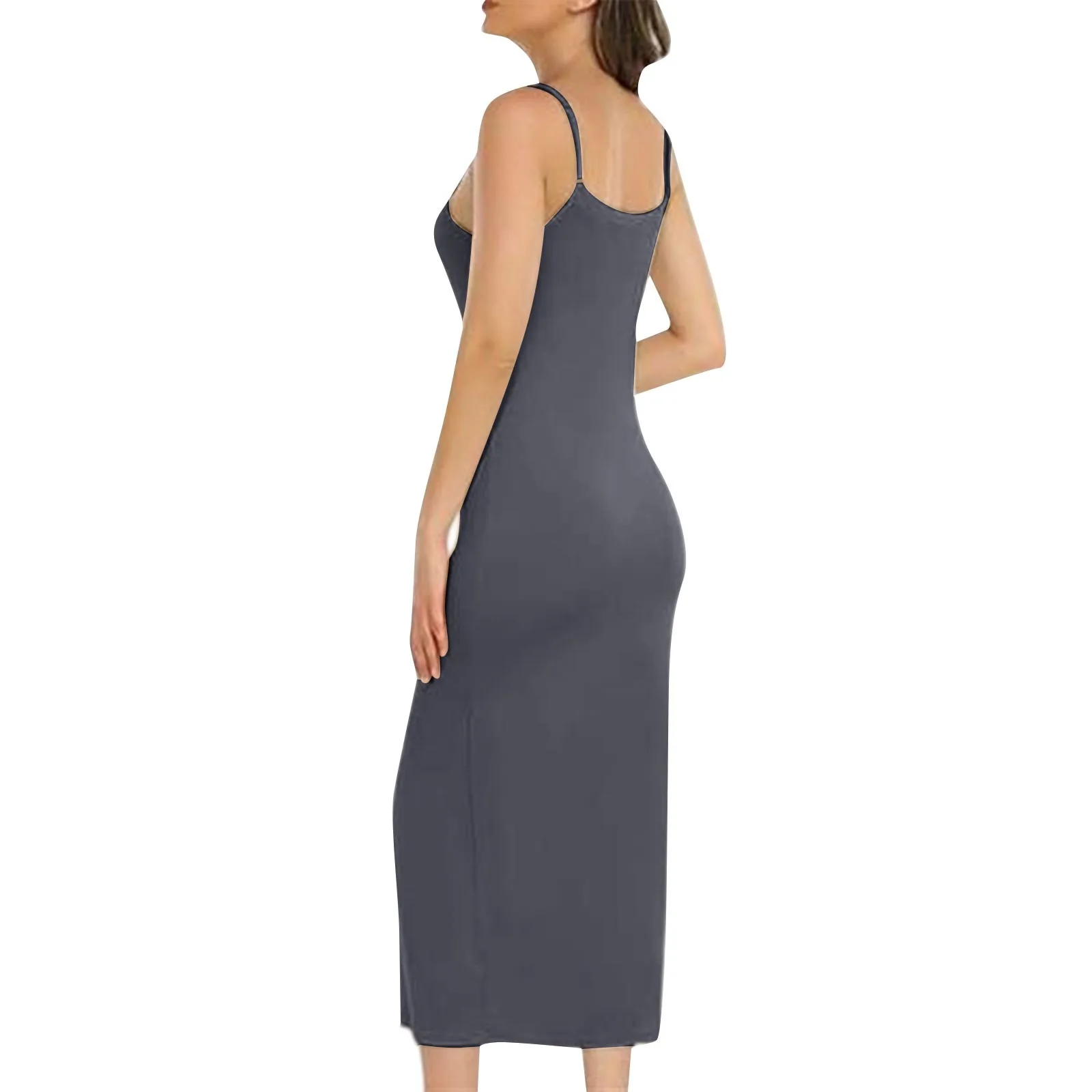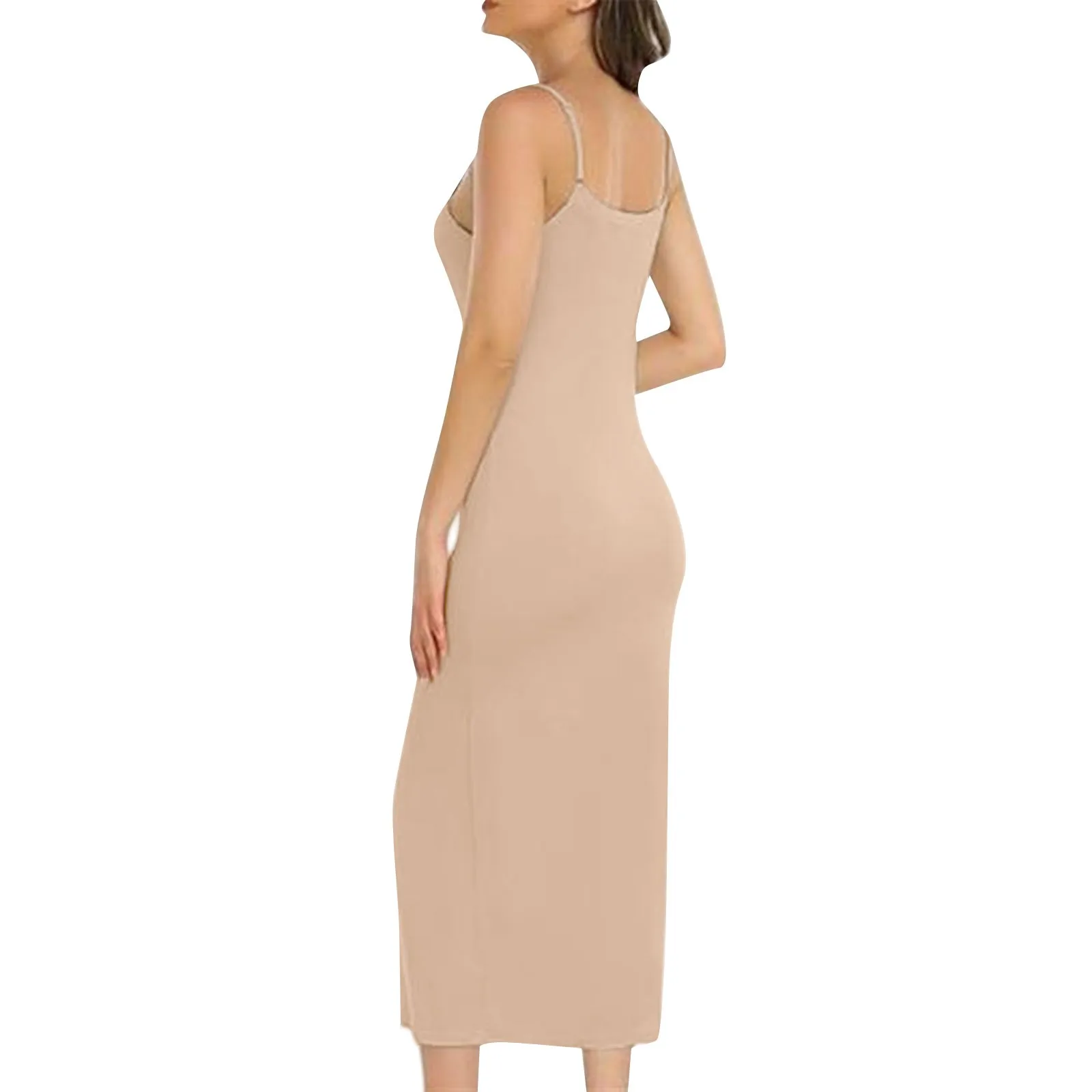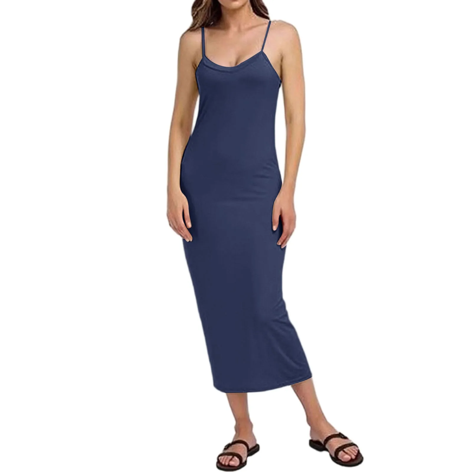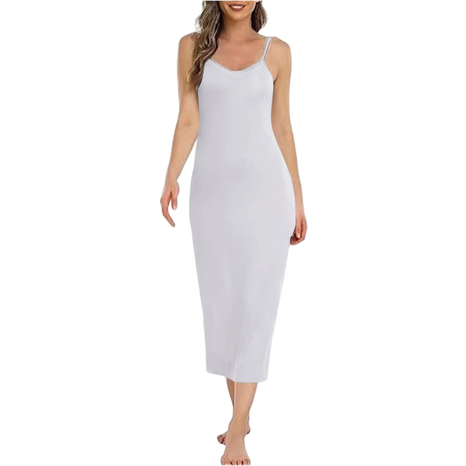 Women Long Slip Dress Basic Adjustable Spaghetti Straps Cami Slip Dress Soft V Neck Nightgown Under Dresses Elegant Women'S