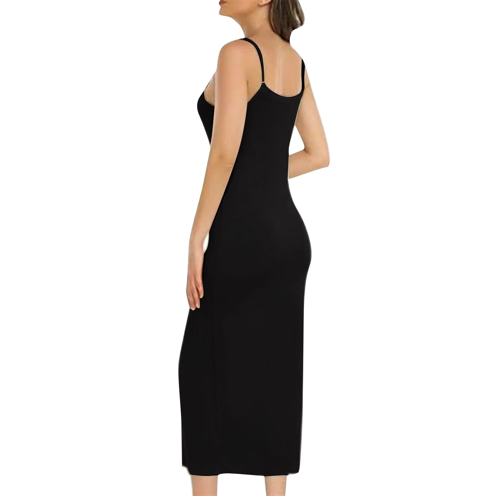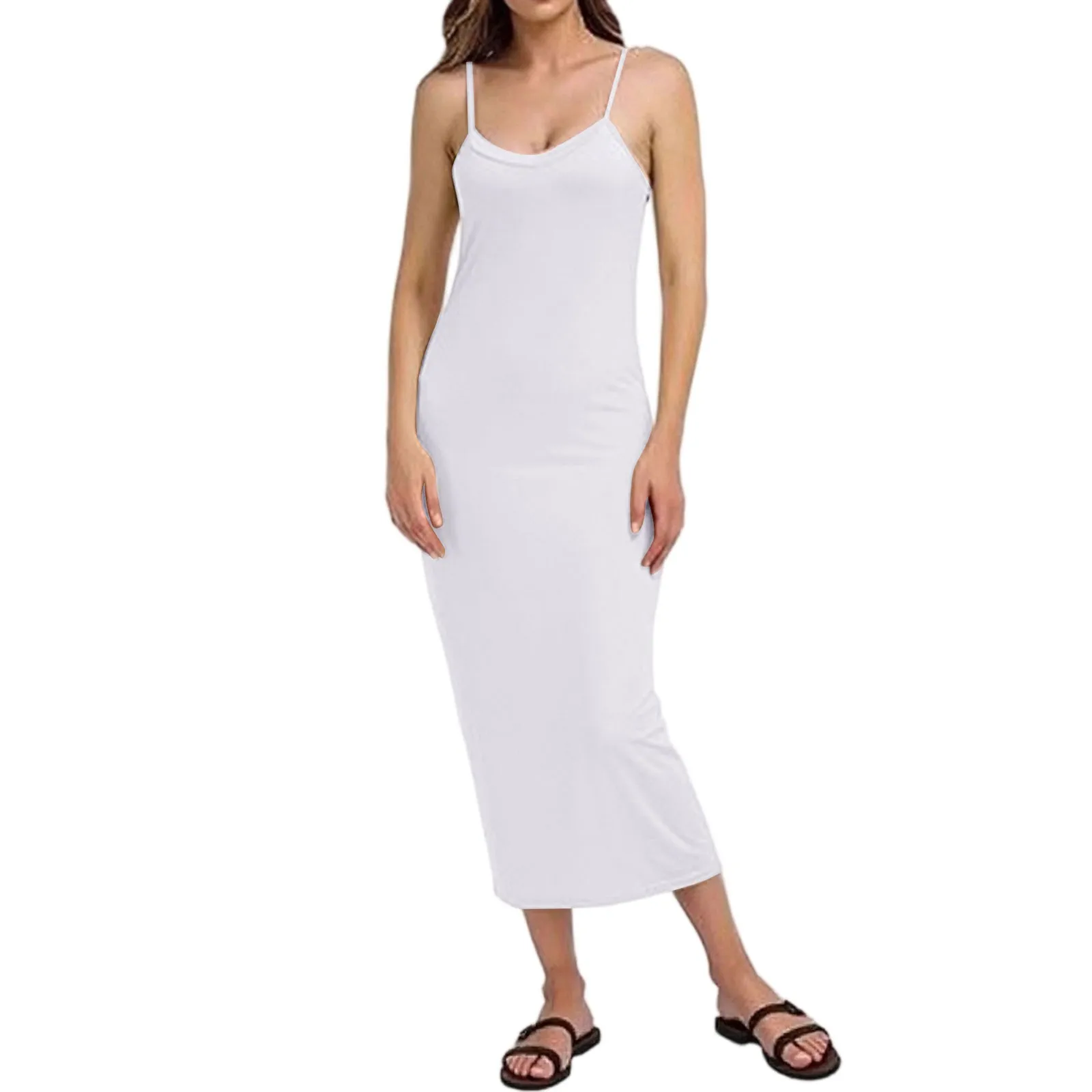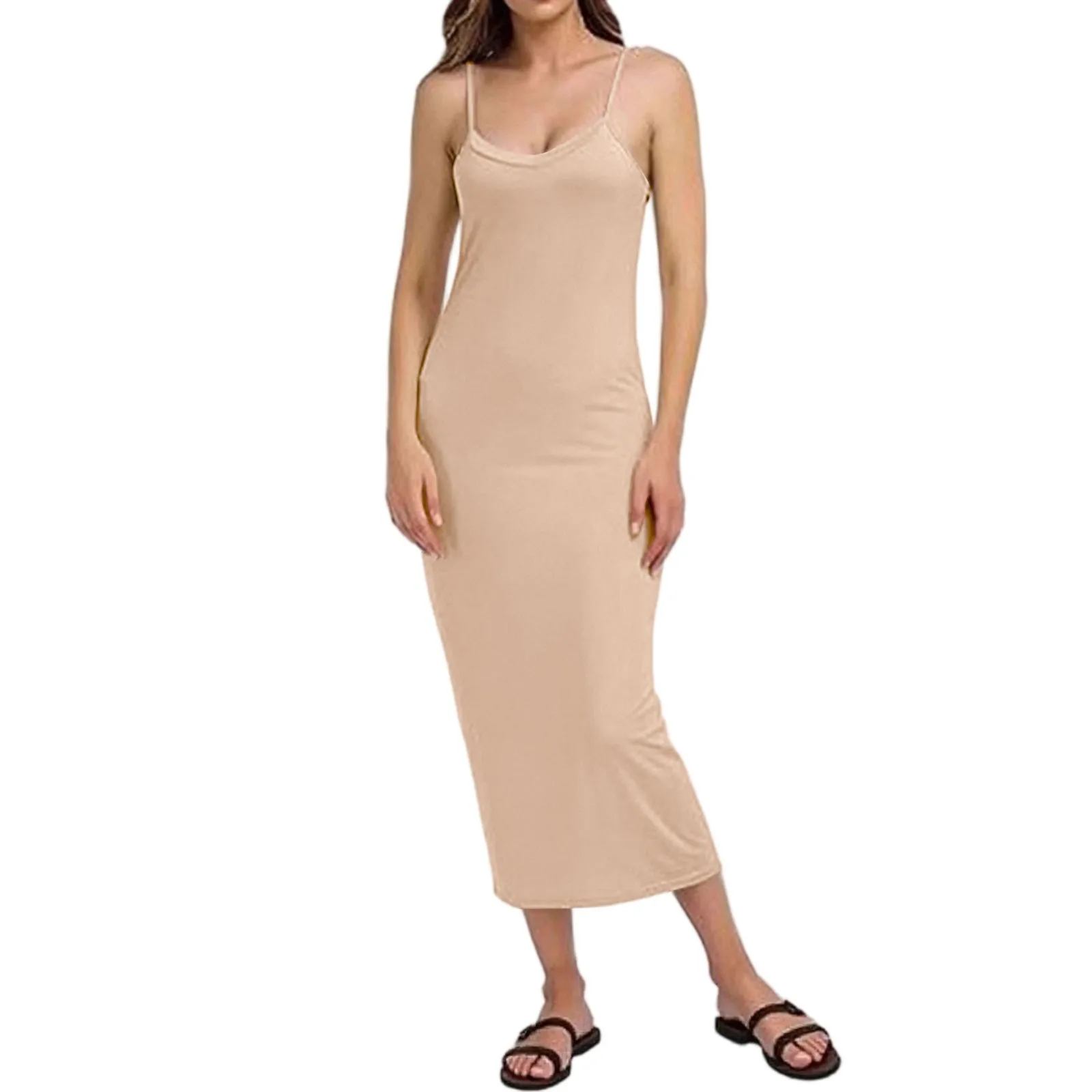 Women Long Slip Dress Basic Adjustable Spaghetti Straps Cami Slip Dress Soft V Neck Nightgown Under Dresses