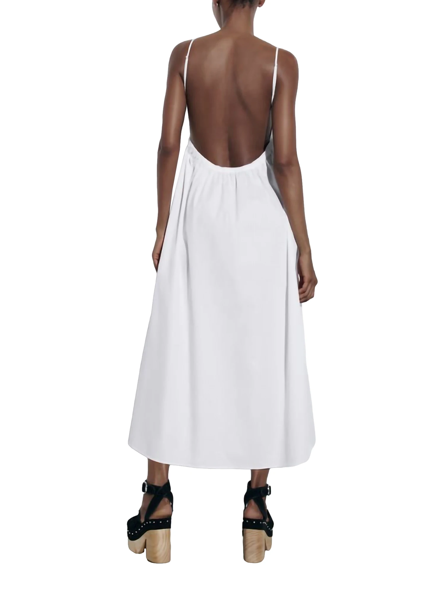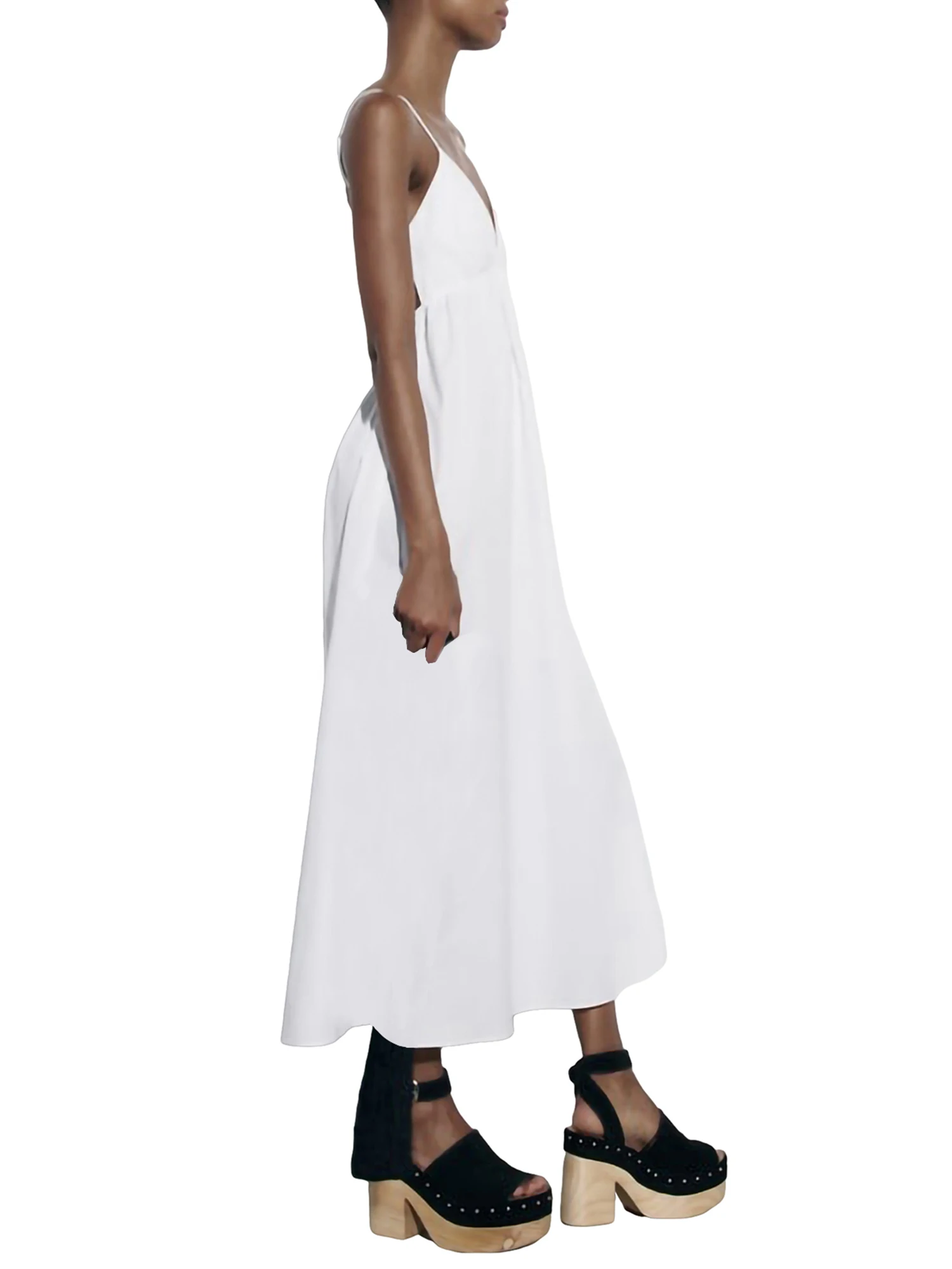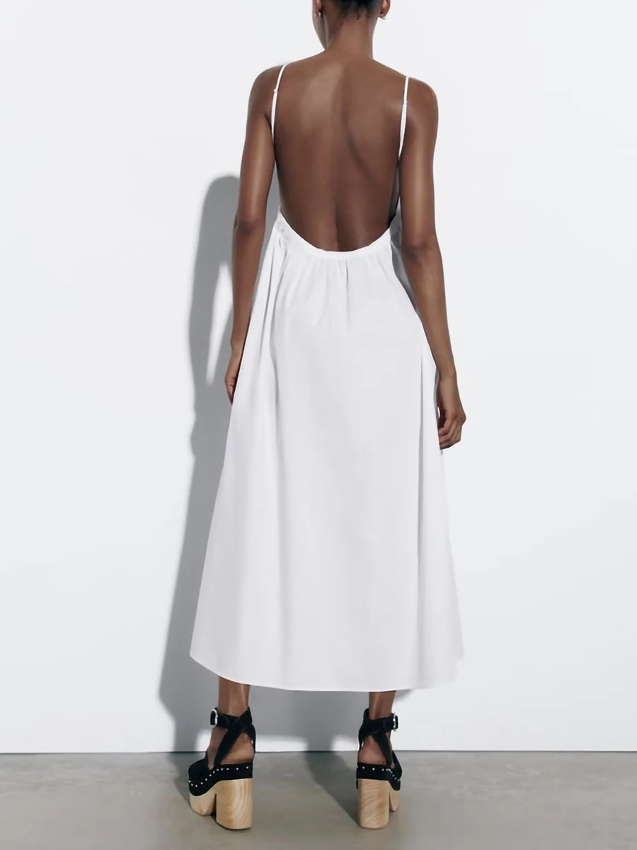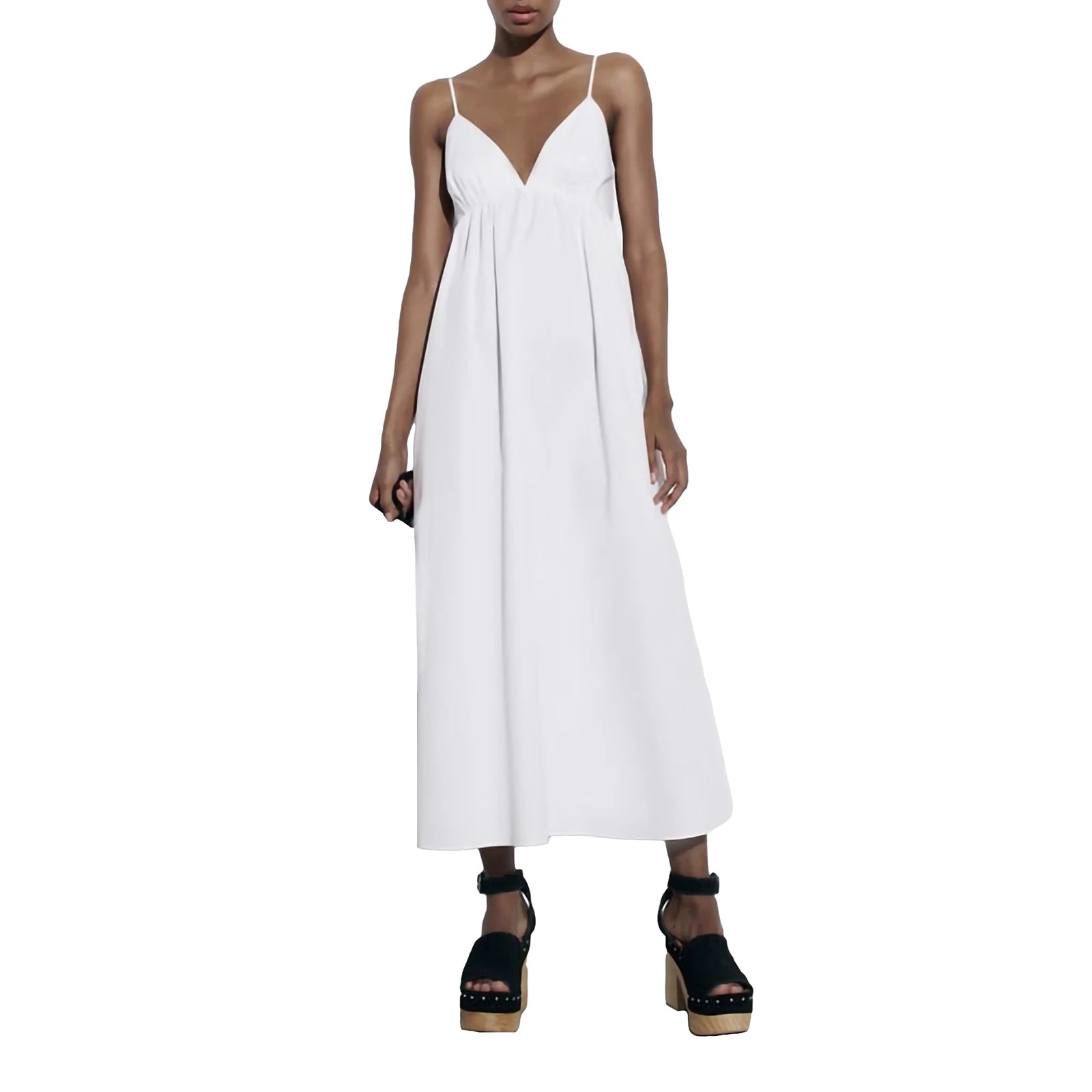 Women Solid Color Long Dress V-Neck Sleeveless Backless A-line Dress Summer Casual Beach Party Cami Dress