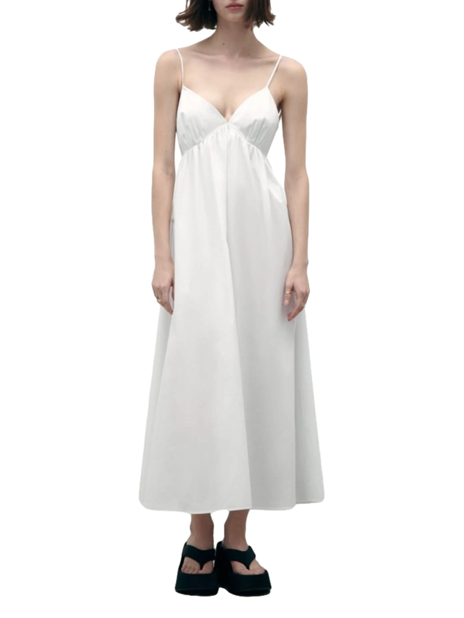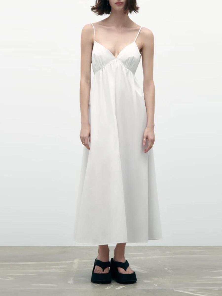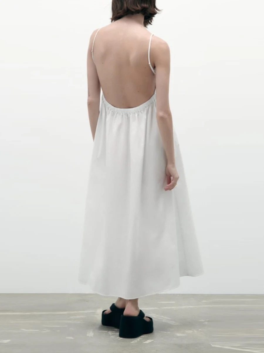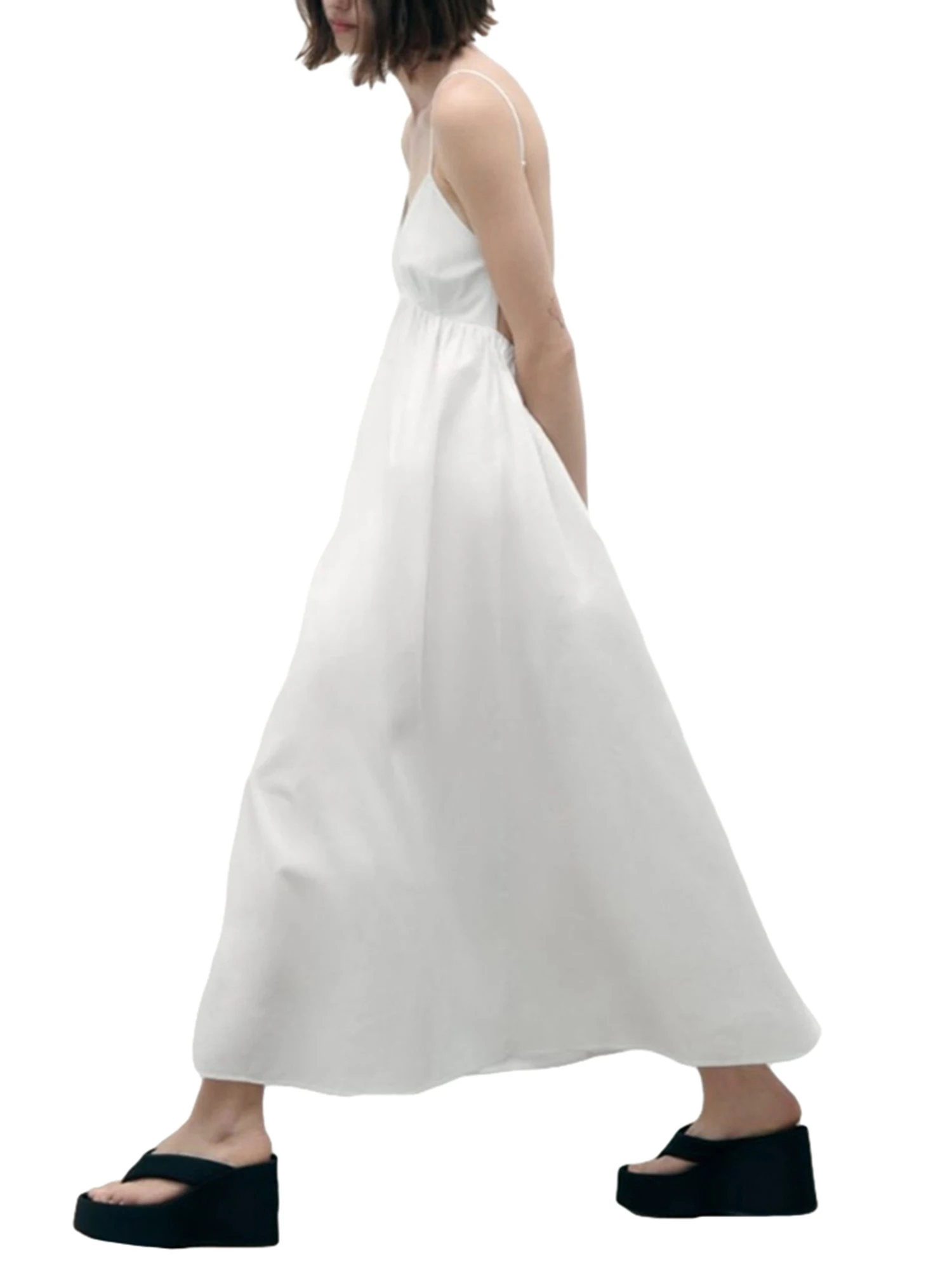 Women Solid Color Long Dress V-Neck Sleeveless Backless A-line Dress Summer Casual Beach Party Cami Dress