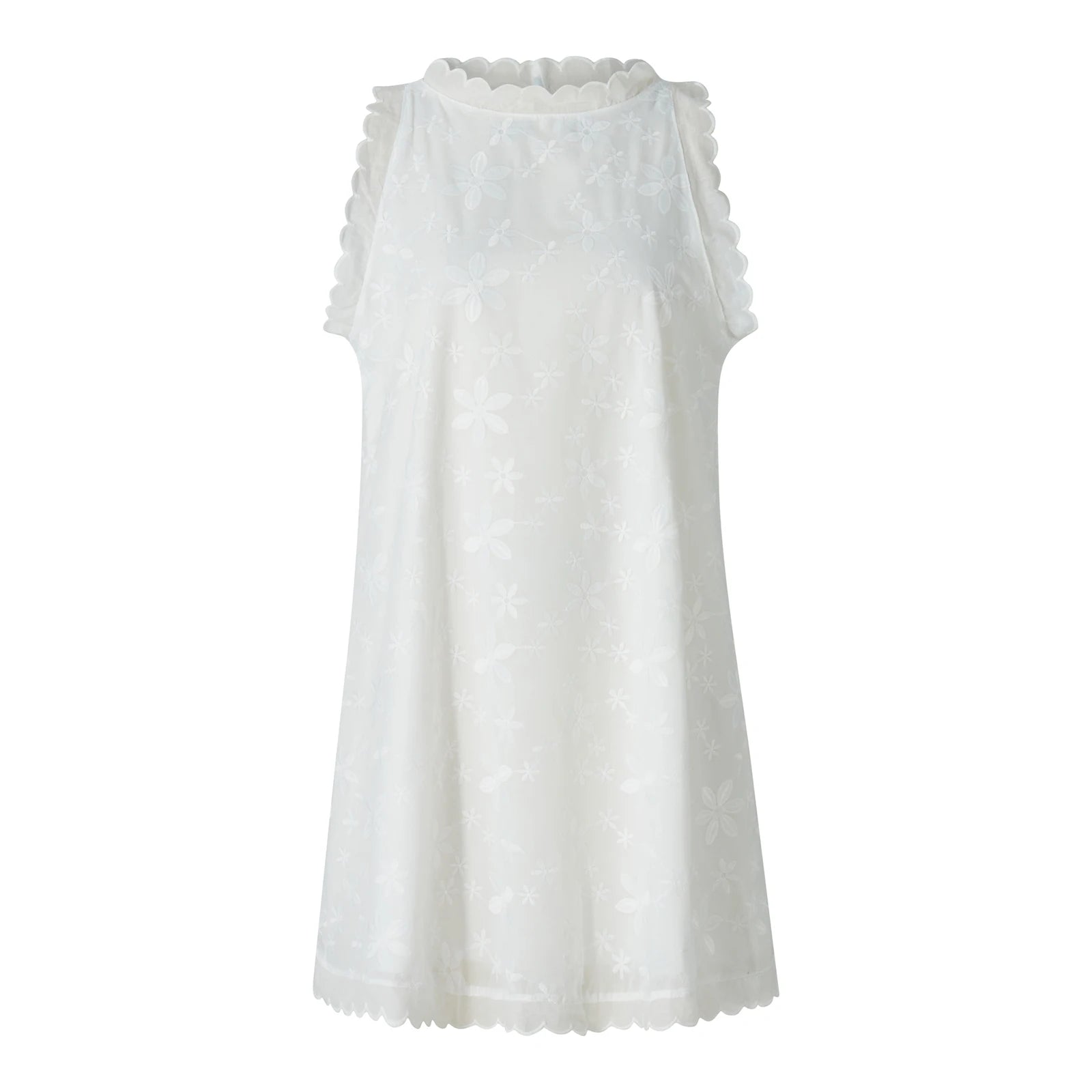 Women Summer Casual Short Dress Flower Lace Crew Neck Sleeveless Sweet Dress Fashion Mini Dress