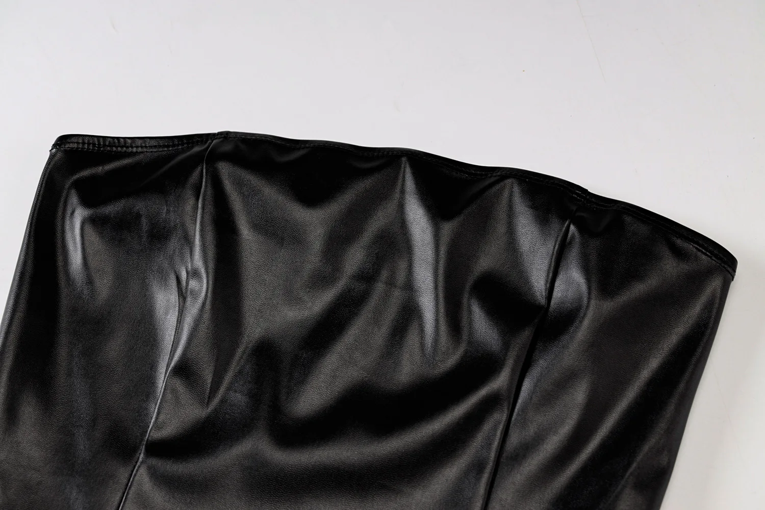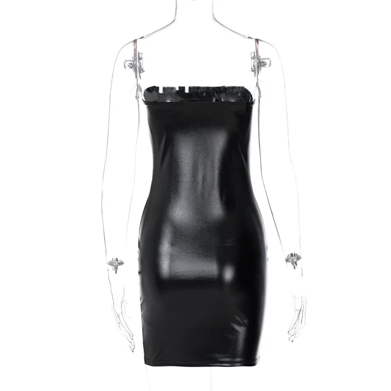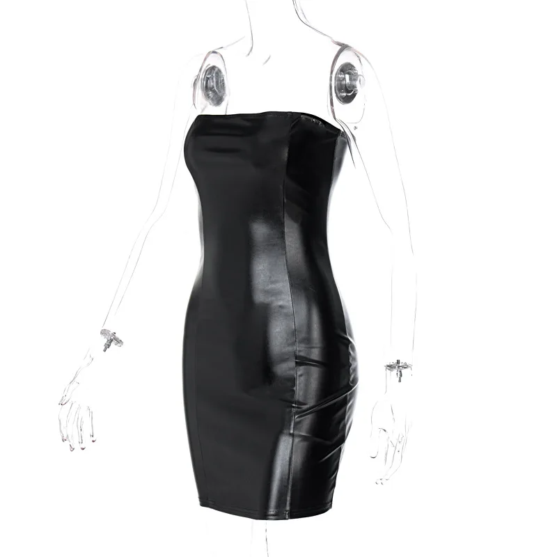 Women Summer Sexy Party Strapless Bodycon Pu Leather Slim Package Hip Black Mini Dress Sundress Female Clothing
