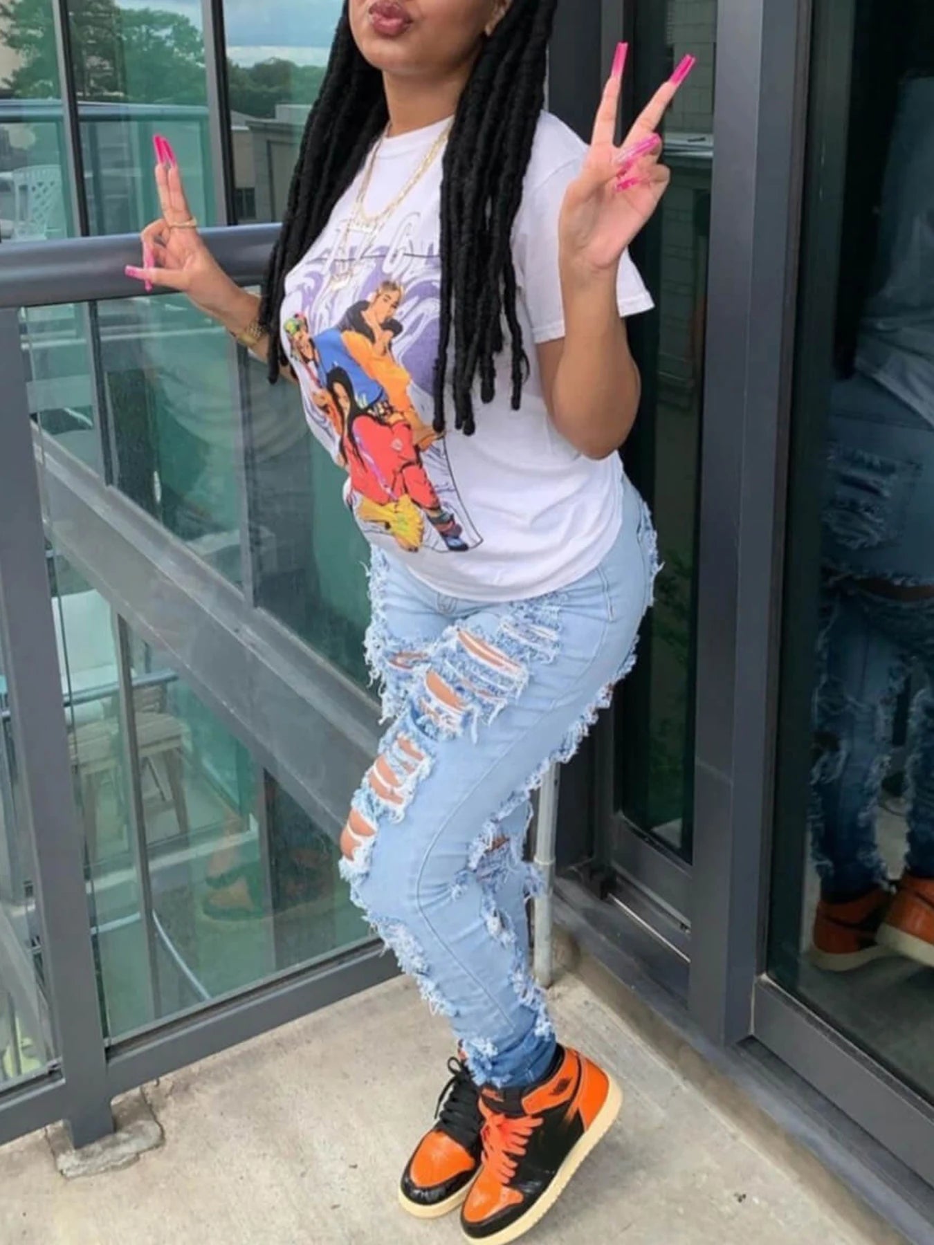 Women's High Waisted Elastic Ripped Washed Slim Fit Jeans, Street Style, Slanted Pockets, High-Quality Fabric, Suitable for Dail
