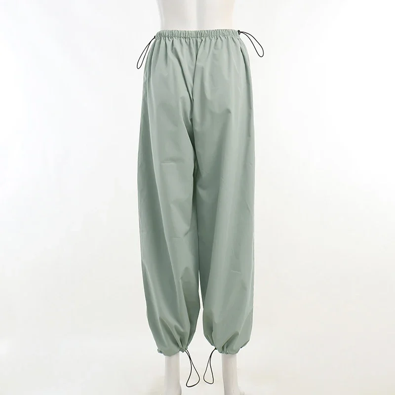 Y2k Cargo Women Drawstring Pants Low Waist Sweatpant Streetwear Vintage Baggy Wide Leg Trousers Oversized Parachute Jogger Pants